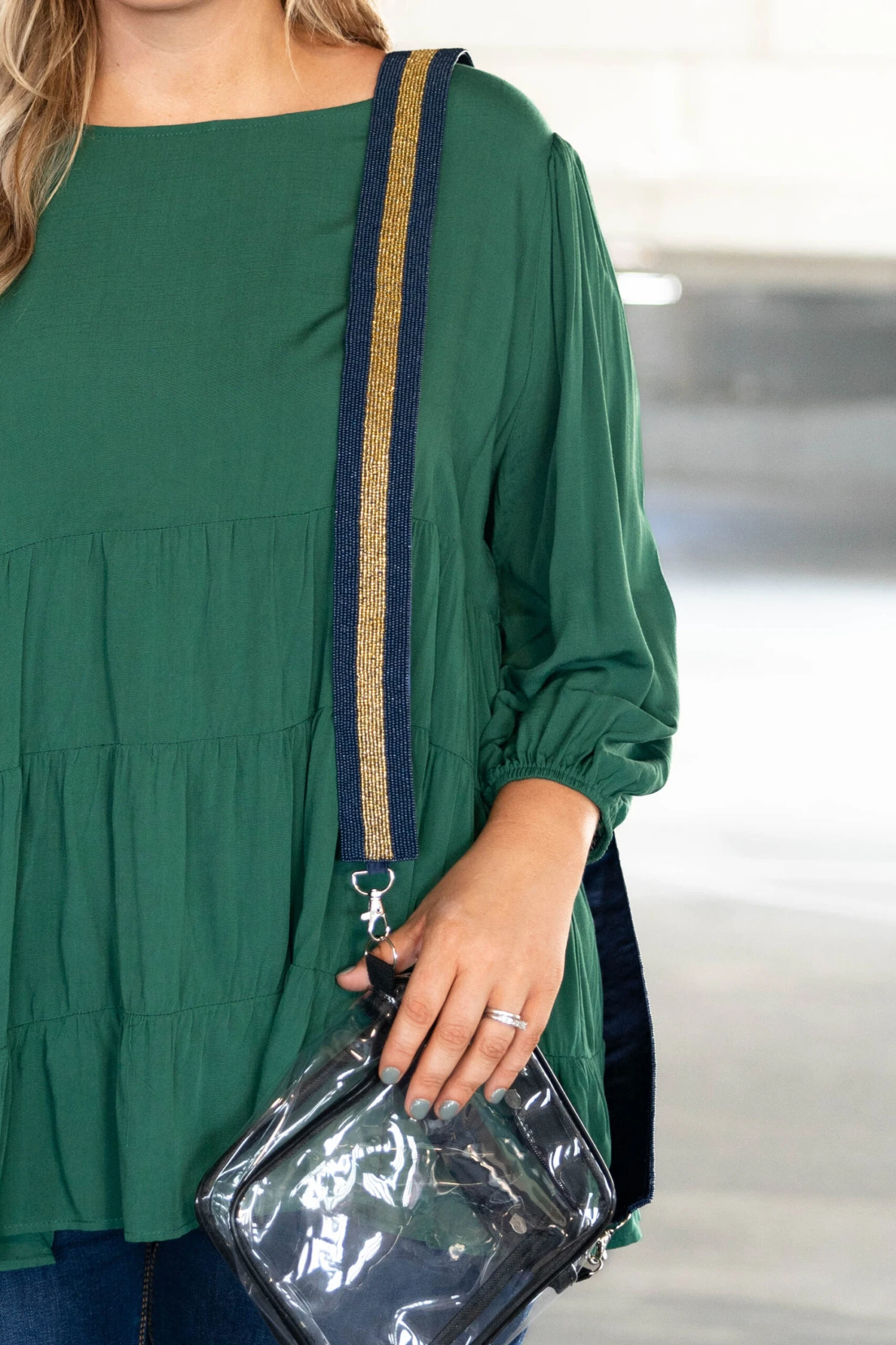 We simply love this adorable purse strap! This purse strap is the perfect accessory to add to all your gameday gear this season! The blue, gold color and beaded design is SO chic! Style this with your favorite purse and a cute gameday outfit for a fun, trendy look!