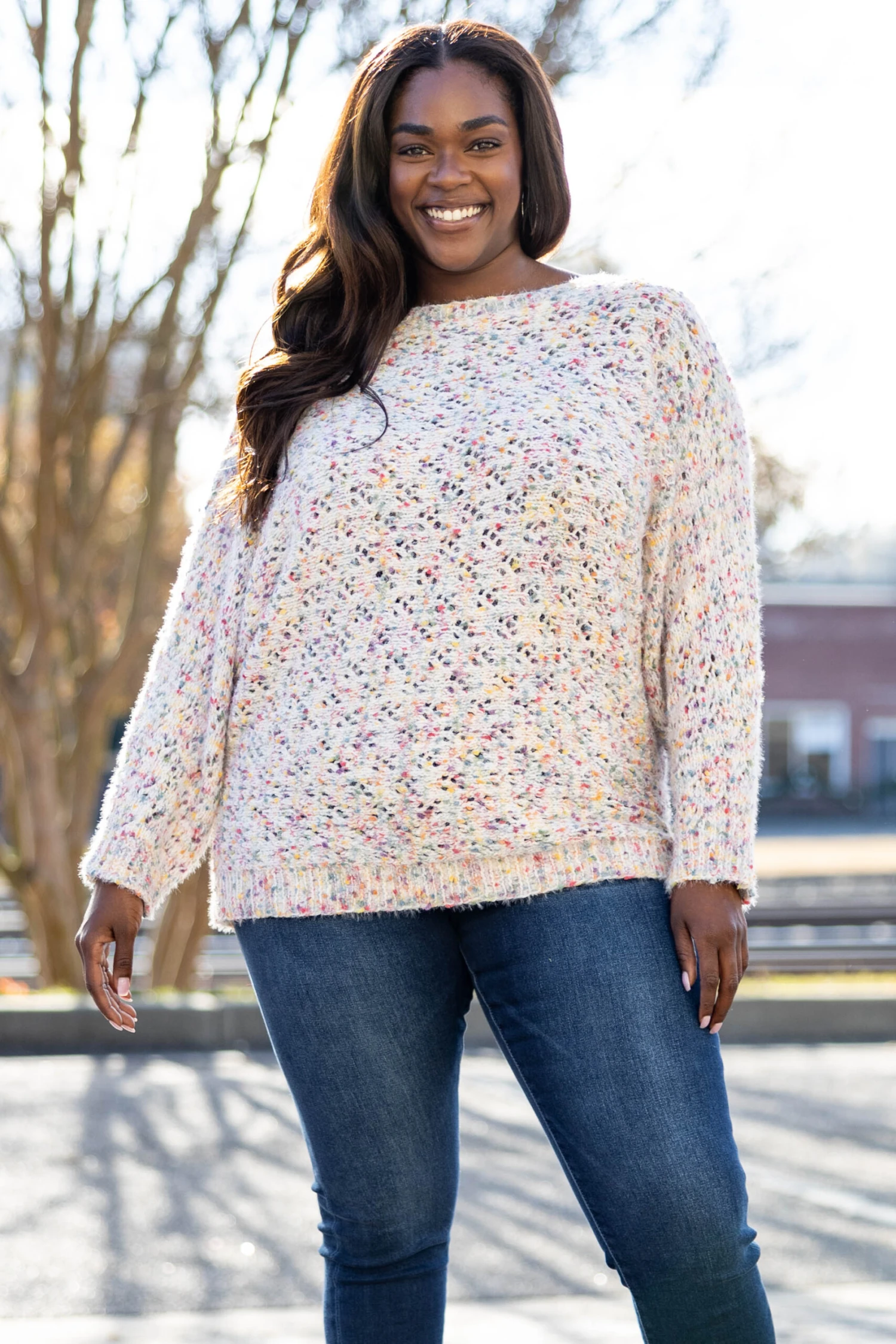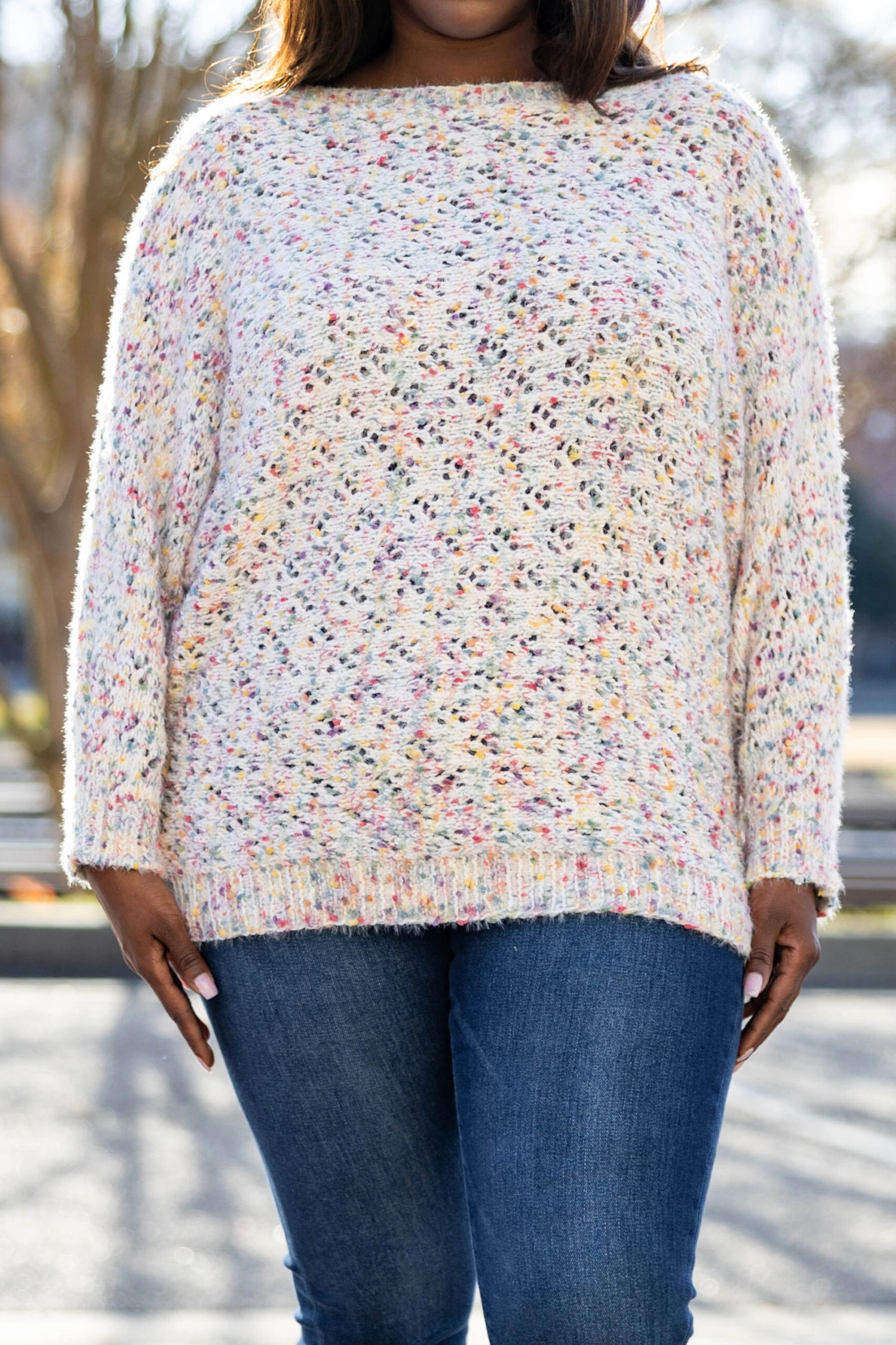 We are down to wear this sweater on repeat! It has a great length, features a cool confetti pattern and has a subtle gold thread throughout to give you a pop of sparkle. Pair this with jeans and booties and even throw on a scarf for the perfect cool weather style!