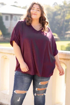 This top has a fierce zebra pattern with a beautiful wine color you can style for every occasion! It’s comfortable for all-day wear, has a flowy fit, and features the cutest flowy sleeves! Pair this top with skinnies and sandals for an easy everyday look!Â