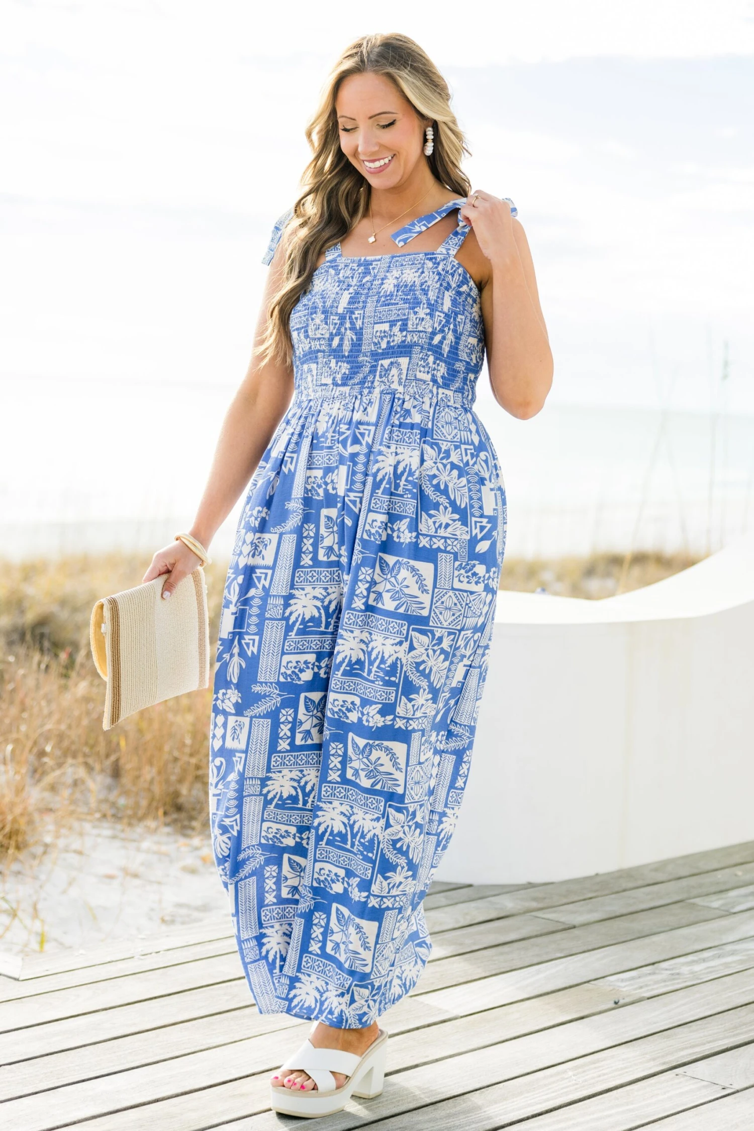 Get ready for some fun in the sun with our Packing My Bags Jumpsuit! Featuring an island print, smocked bodice, adjustable tie straps, and functional pockets, this jumpsuit is perfect for your next vacation! Don’t forget to pack it in your suitcase!