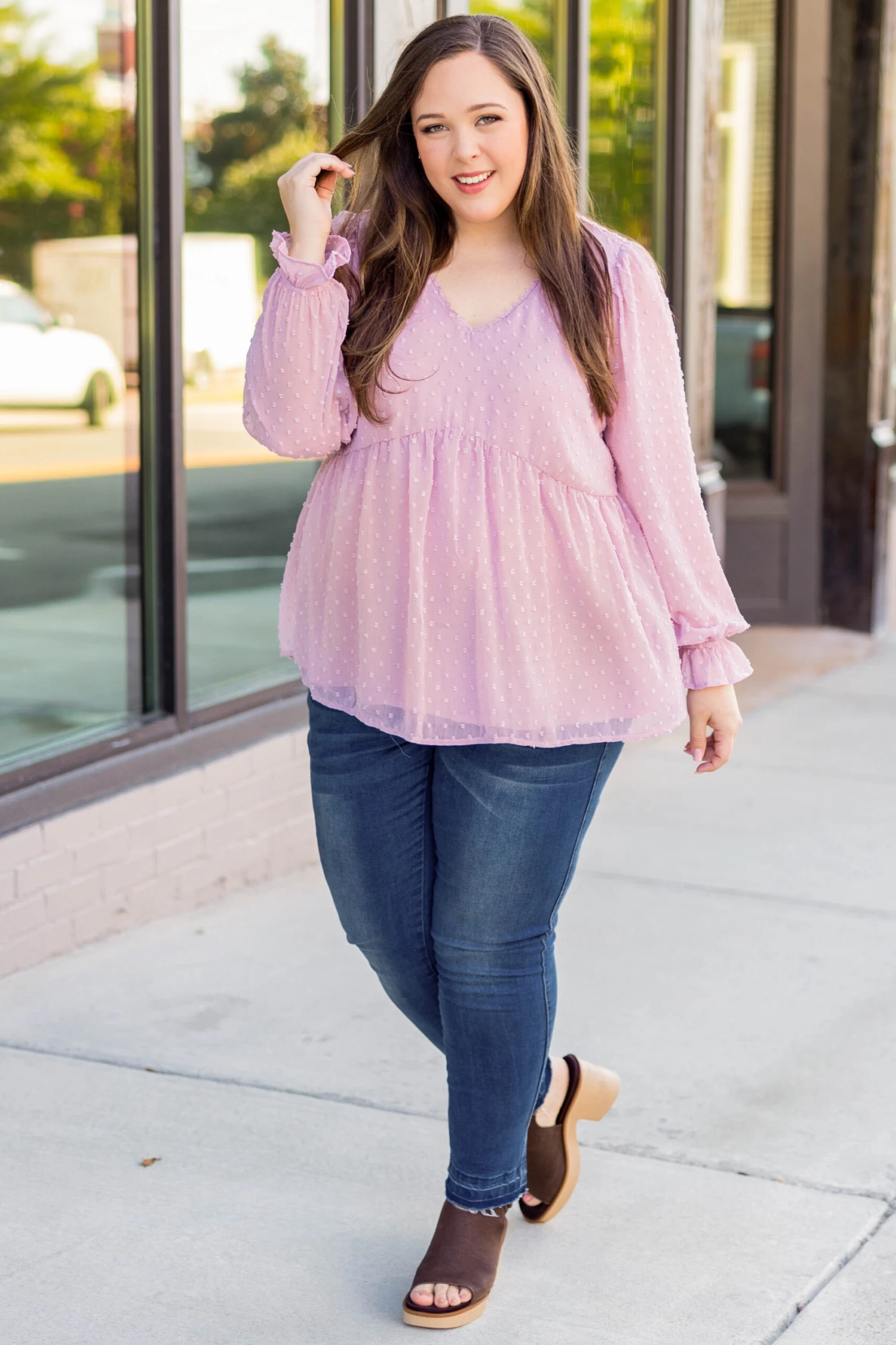 Rock this top at your next party! It is simple and chic! This top has a solid mauve color with a textured fabric we adore! It’s easy to style, has a figure-flattering fit, and features an attached under-lay for the ultimate look! Style this blouse with skinnies and wedges for your next event!Â