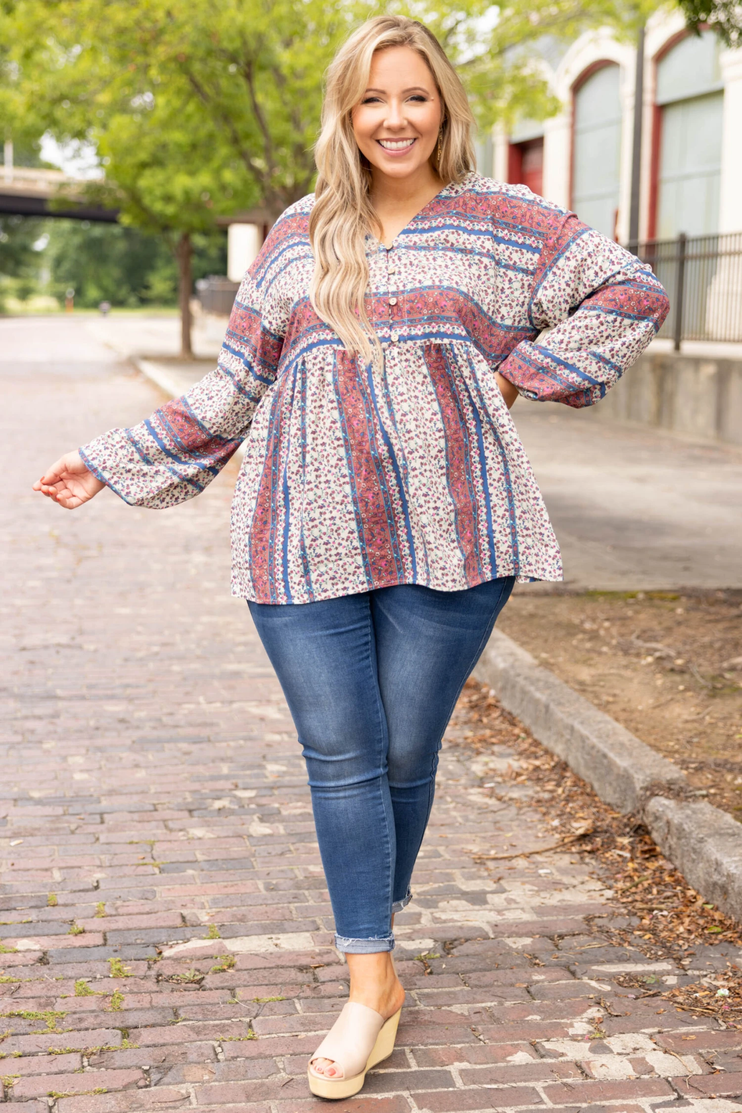 This top has an attitude of its own! The floral pattern and flowy style is just what you need to be cute and comfortable in this season! Style this beauty with some skinnies and wedges for a perfect, trendy look!