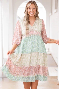 This dress is perfect for you! It has a beautiful pink multi color with a lovely floral pattern that is just in time for the season! The ruffled neckline and flowy babydoll style is perfect for a brunch date with the girls! Pair this beauty with some heels and cute accessories for a sassy chic look!