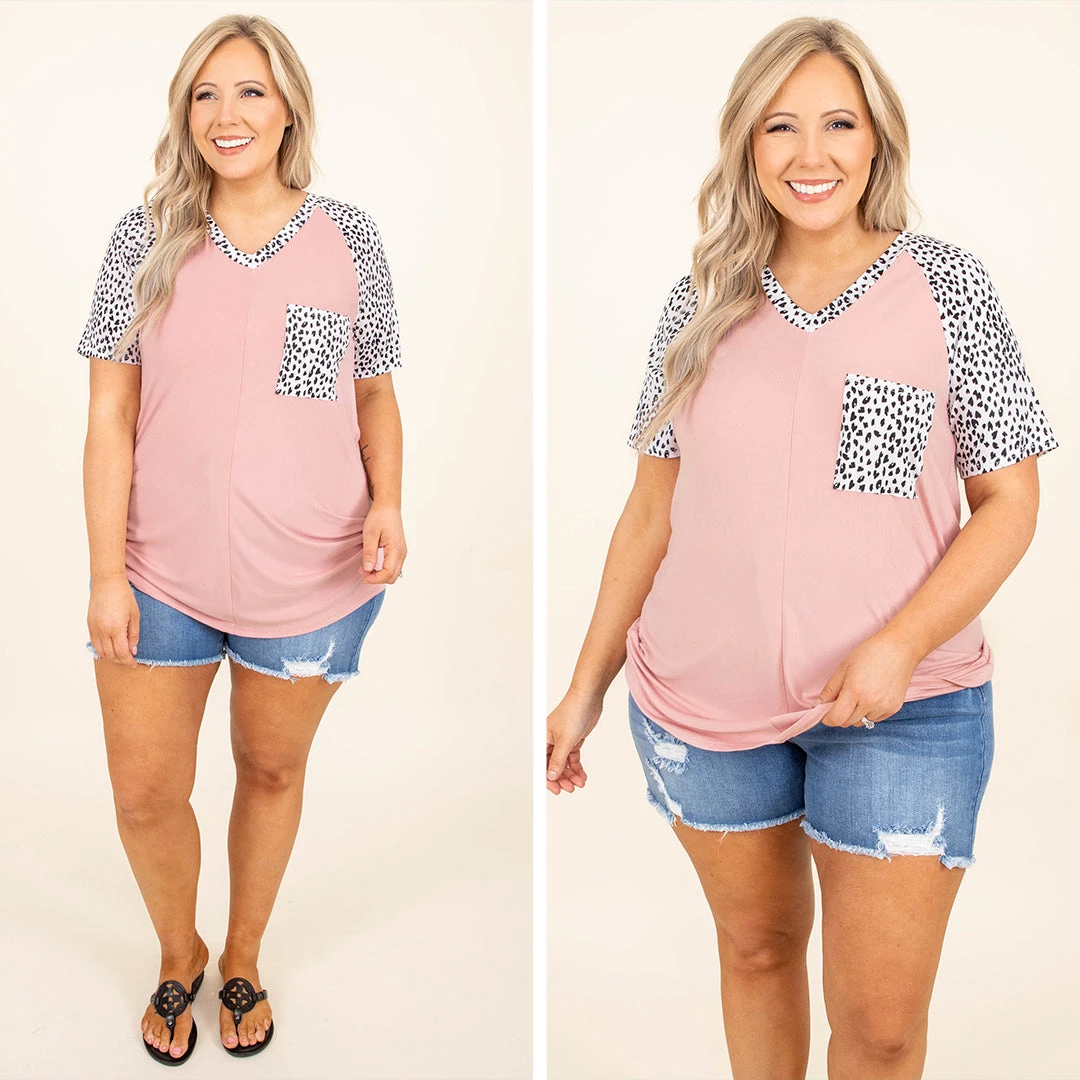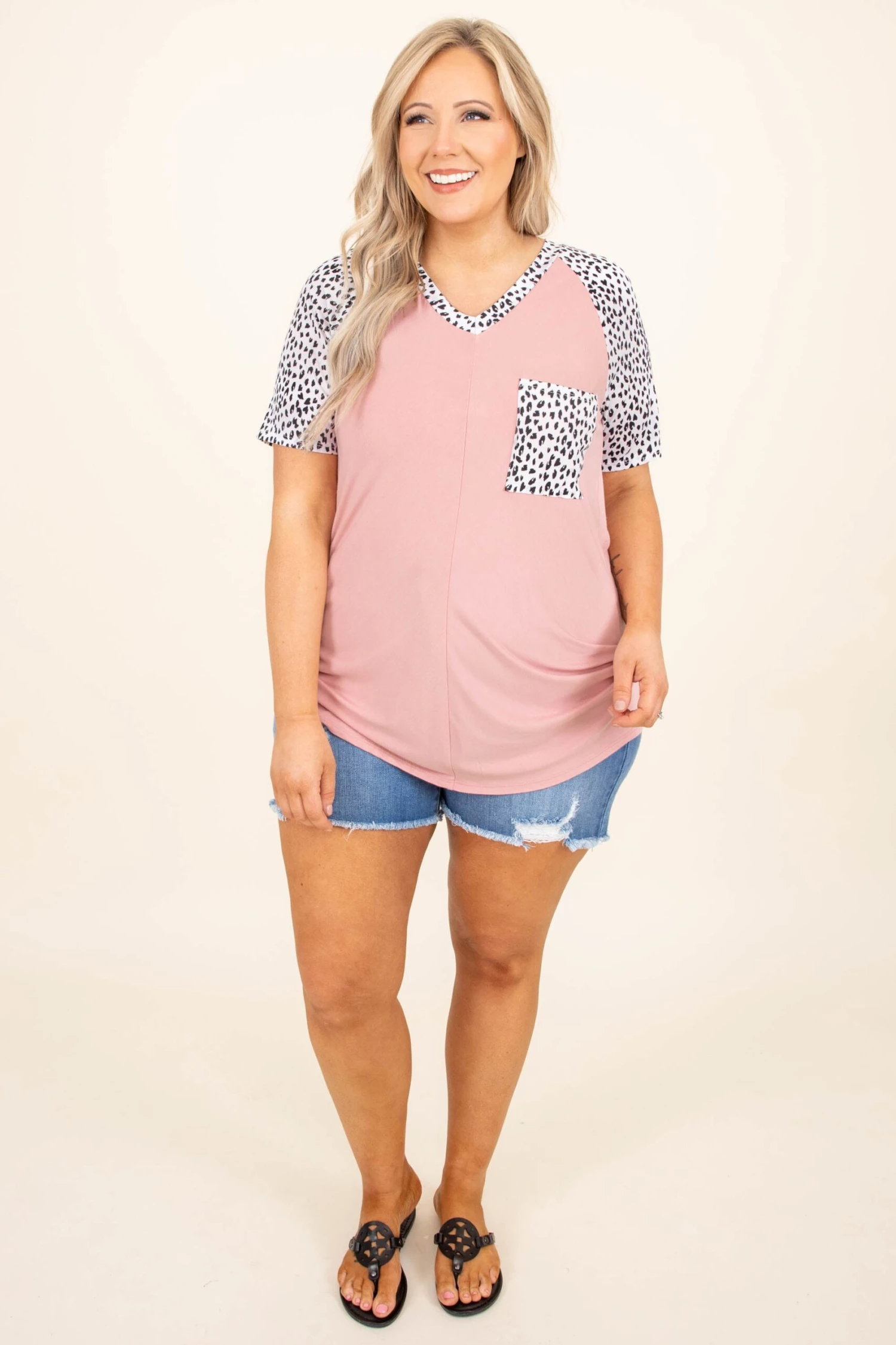 This basic top is anything but! The dusty pink color makes the black and white leopard pattern pop and the contrasting front pocket look is so cute! The material is so soft and this cutie has enough stretch to keep you comfy all day! Just style it with shorts and sandals for an easy but chic look!