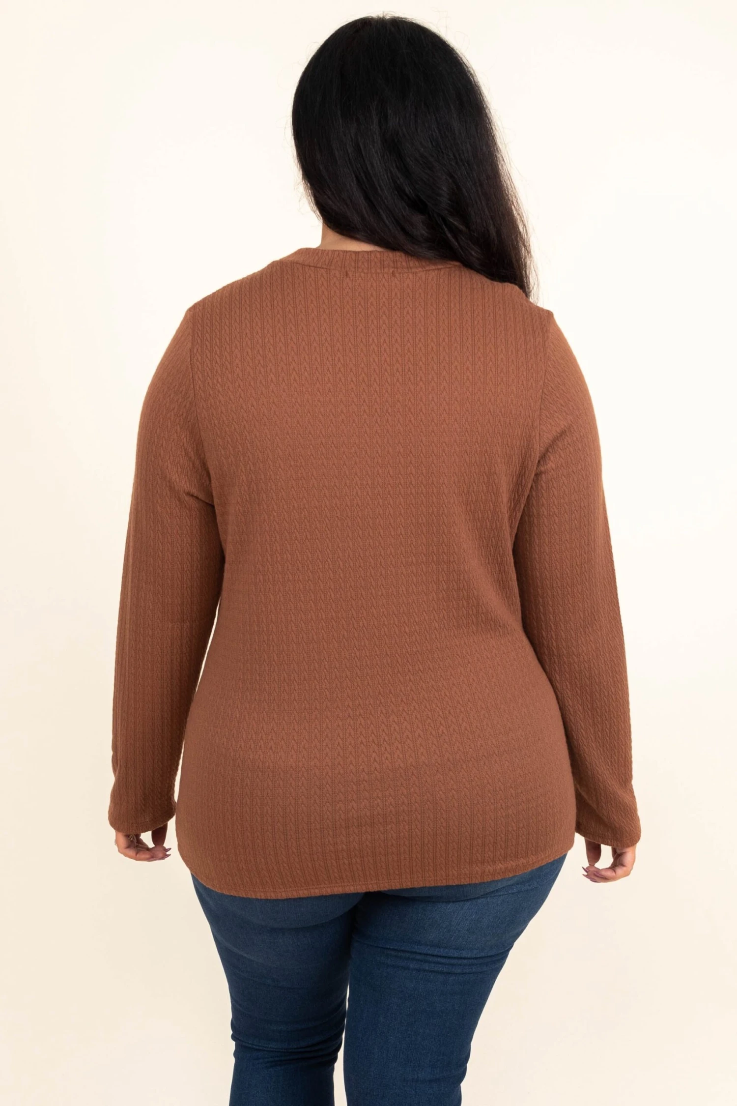 You’ll have so many pleasant memories in this beautiful top! This top has a bold mocha color with a ribbed texture and high neckline that is so sweet! The stretchy, figure flattering fit is perfect to pair with all of your faves! Style this top with skinnies and booties for a classic chic look!