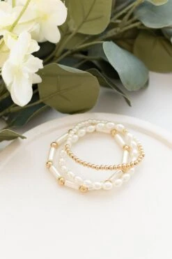 Pearls are always in style! These cute bracelets have a pearly beaded look that will have you in style all season long! Wear these all together or by themselves for a perfect look every time! Style them with any outfit for a little bit of flair!