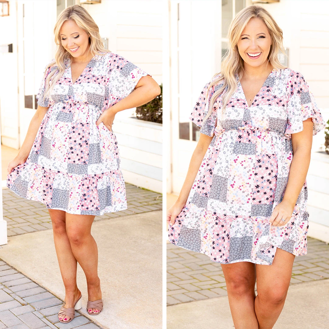 This dress is complete perfection! This cutie has a color blocked star and floral pattern that works so well together! The babydoll style is so cute and the ruffle sleeves with the v-neck give this a sweet and flirty feel! Style this with heels and you are ready to go with a great outfit!