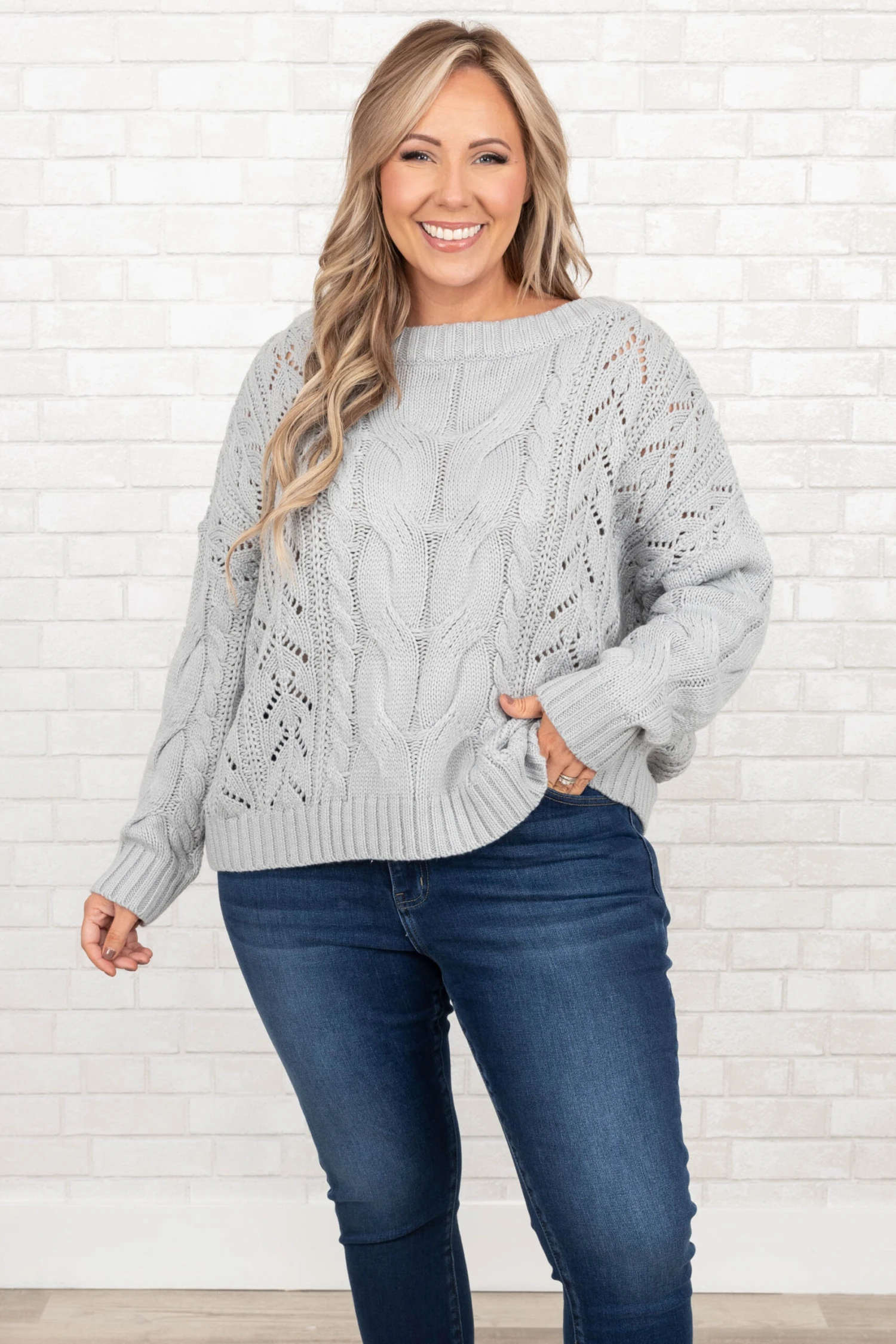 The energy this sweater gives off is so powerful! This sweater has a lovely gray color with a knitted design that so is comfy and sweet! The stretchy, cozy fit is perfect for those cool days this season! Style this sweater with some skinnies and booties for an unforgettable look!