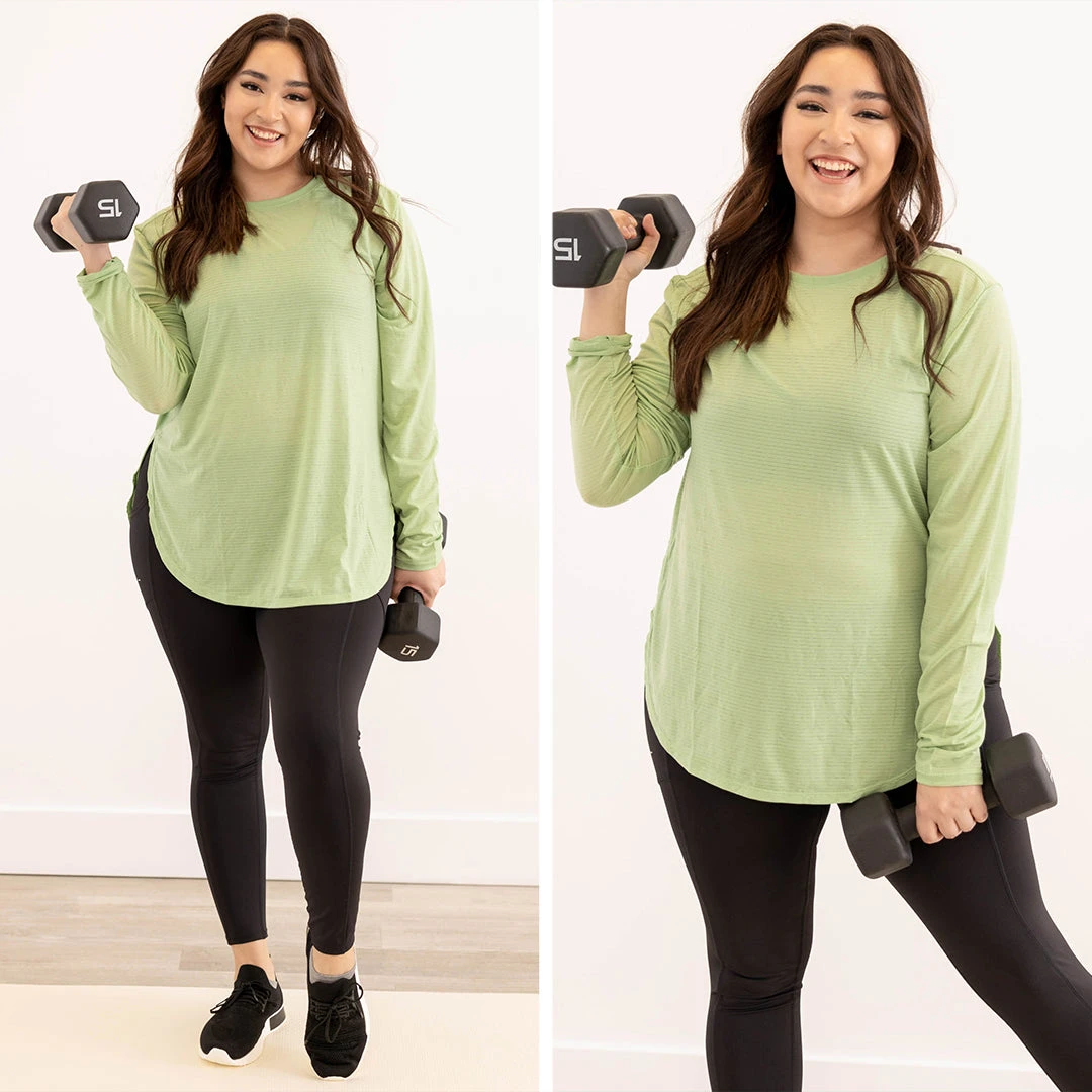 Press on and keep going in this amazing activewear top! The solid fair green color is super chic and the ribbed material is so trendy! This babe is so soft and super lightweight making it perfect for working out or just lounging! Style it with some shorts and sneakers for the perfect look!