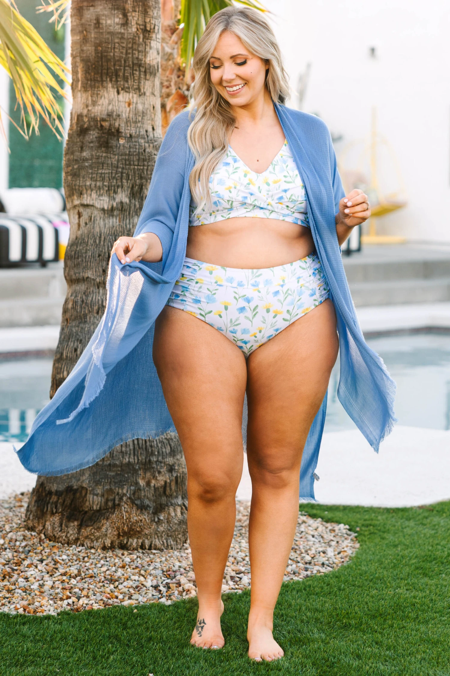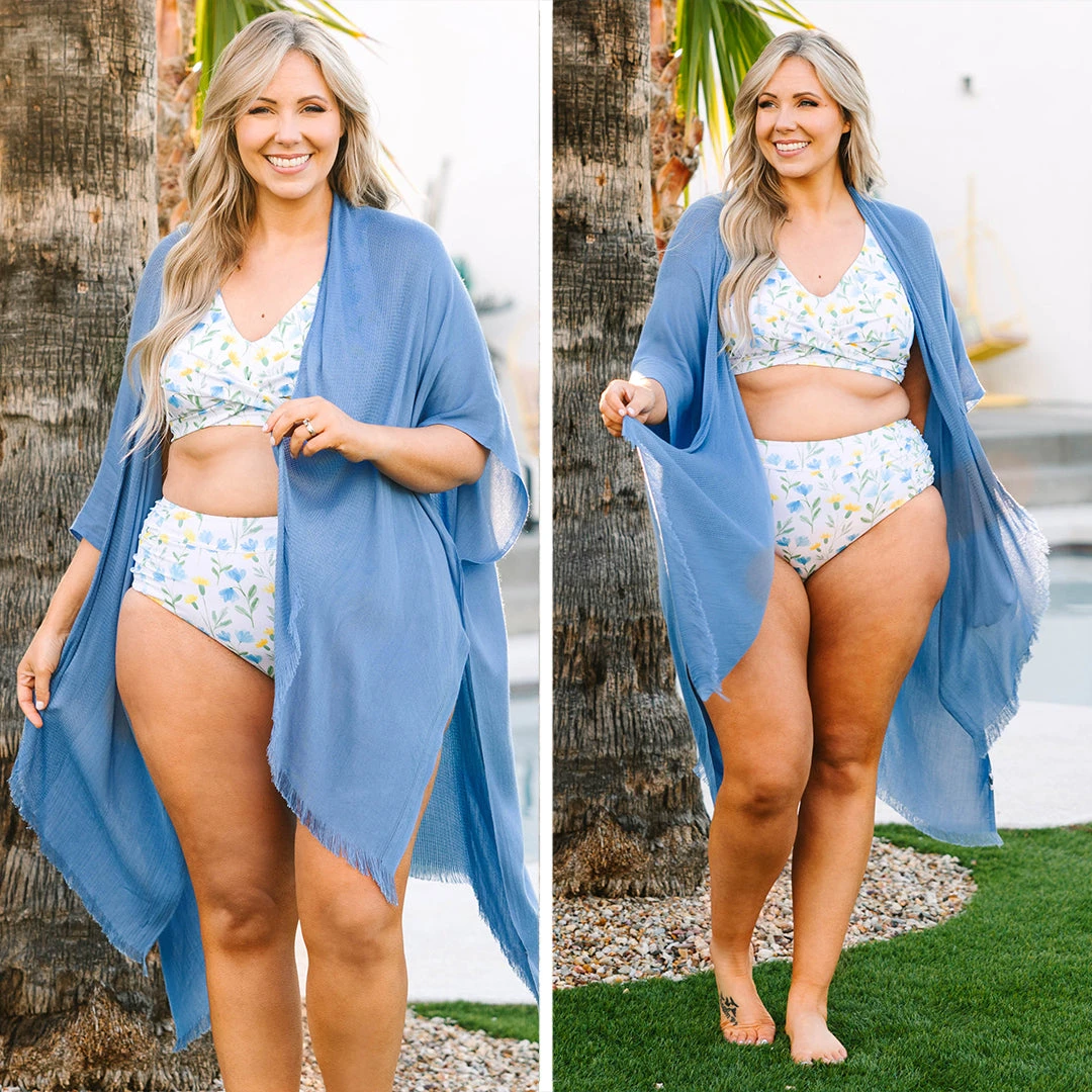 This kimono will make you feel like you are in your own private oasis! The denim blue color is gorgeous and this babe is perfect for layering over your fave outfits! Layer it over your favorite two piece swimmie and sandals for a super stylish outfit!