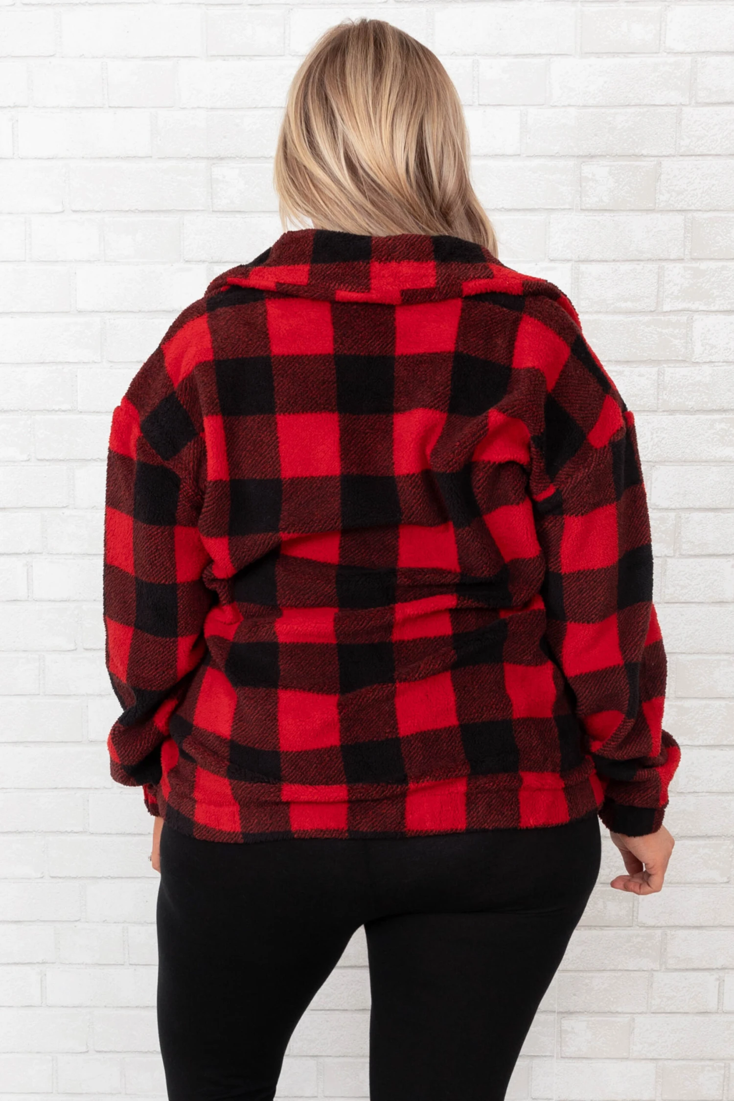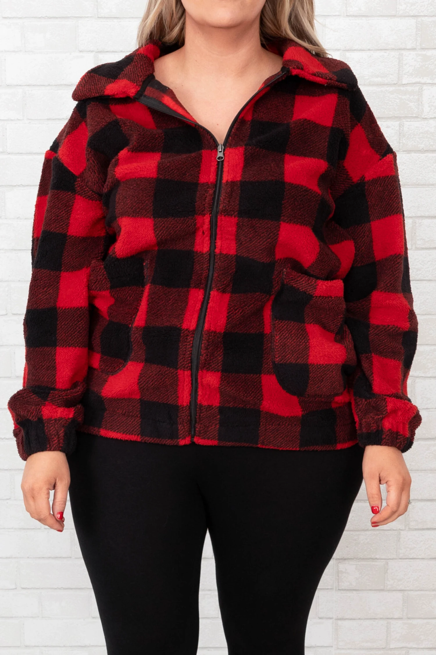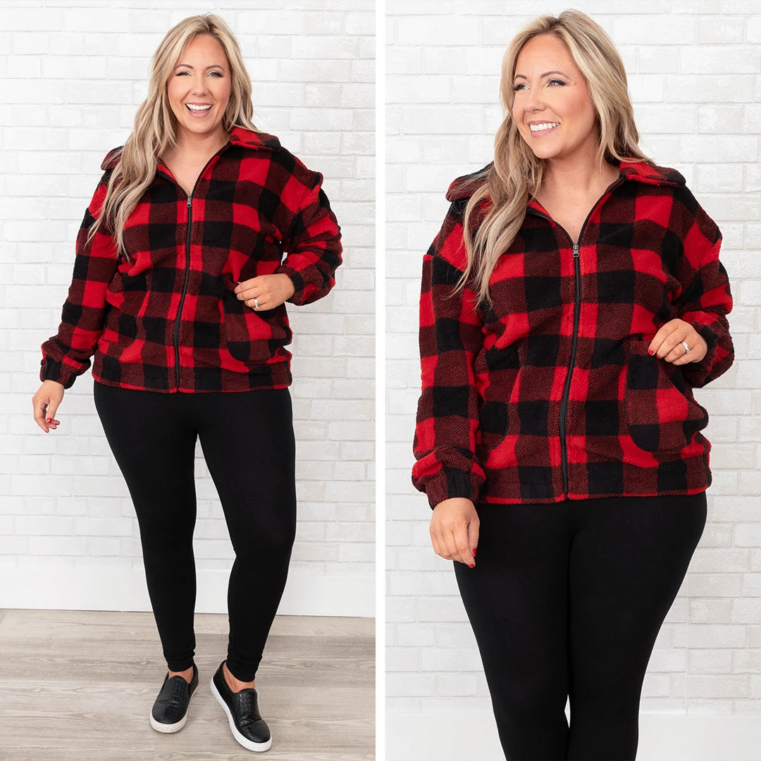 We promise you’ll love this cozy jacket! This jacket has a red black color with a trendy plaid pattern that is perfect for the season! It is super soft and has functional pockets that are so sweet! Grab this jacket as your new favorite layering piece all season long!