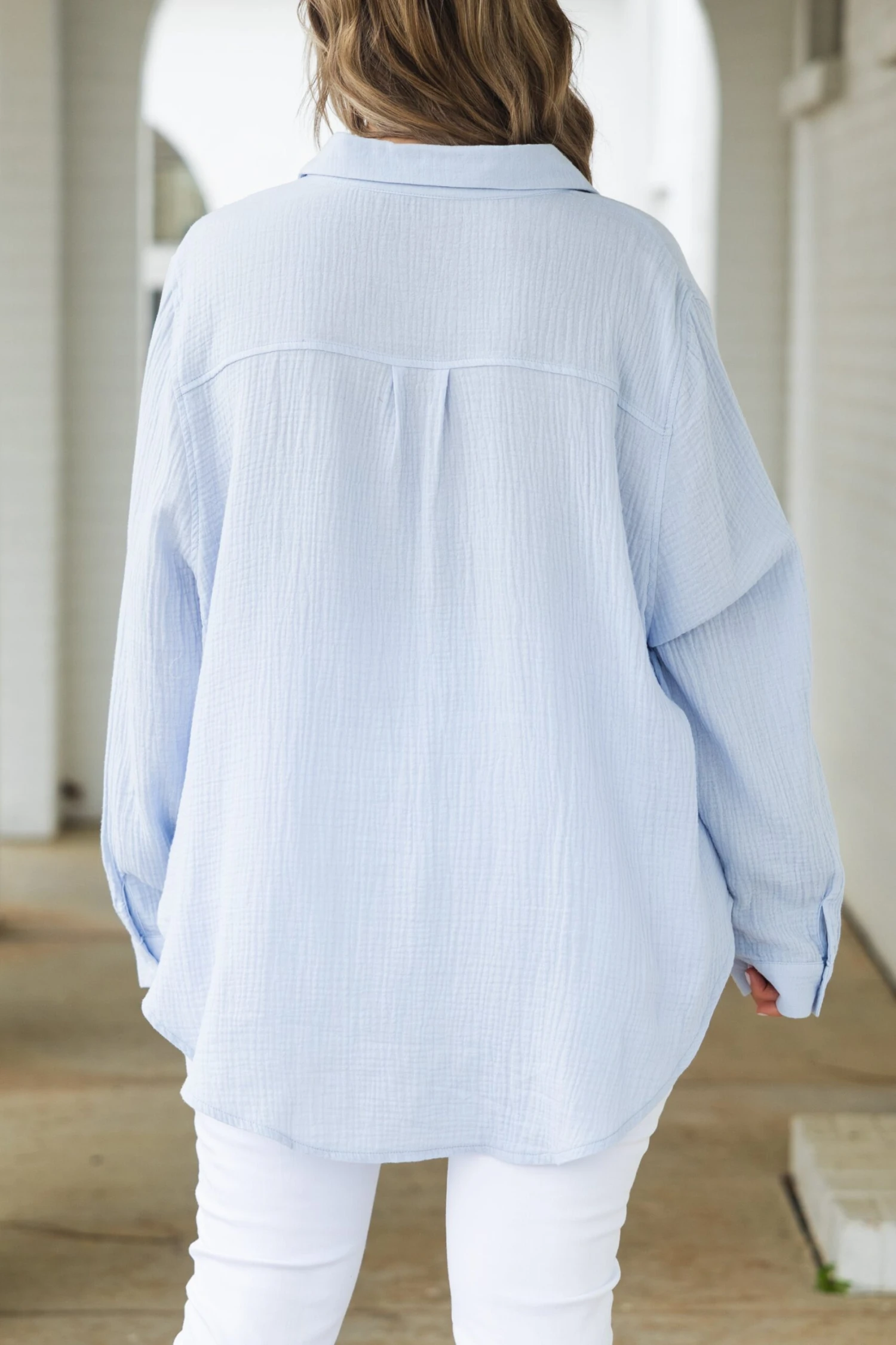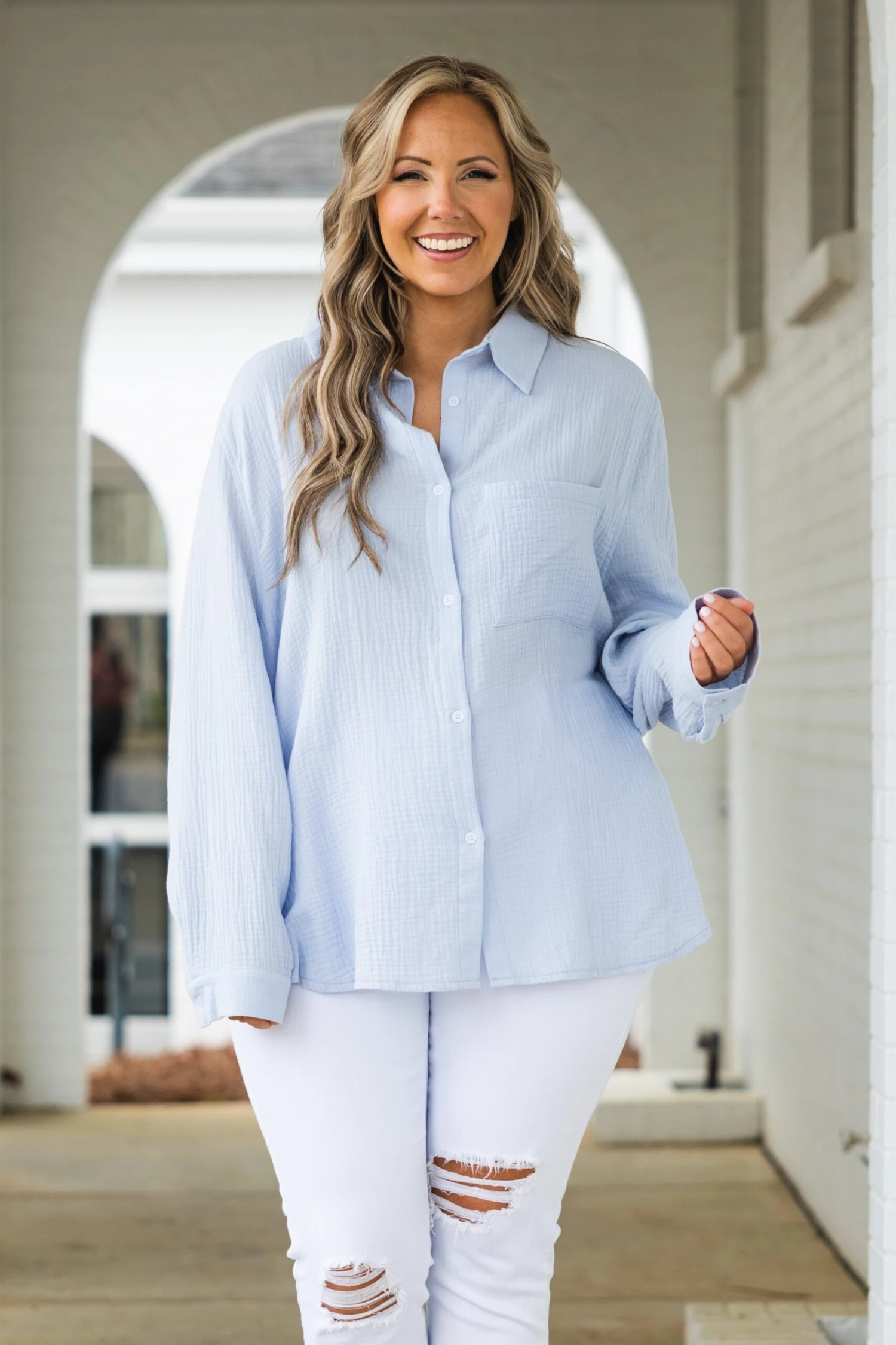 This top was made for soaking up the sun rays! The dazzling blue color and lightweight design is perfect for a day out on the town! The textured style and flattering fit is just what you need in your new fave top! Simply style this top with a cute cami and skinnies for an everyday chic look!