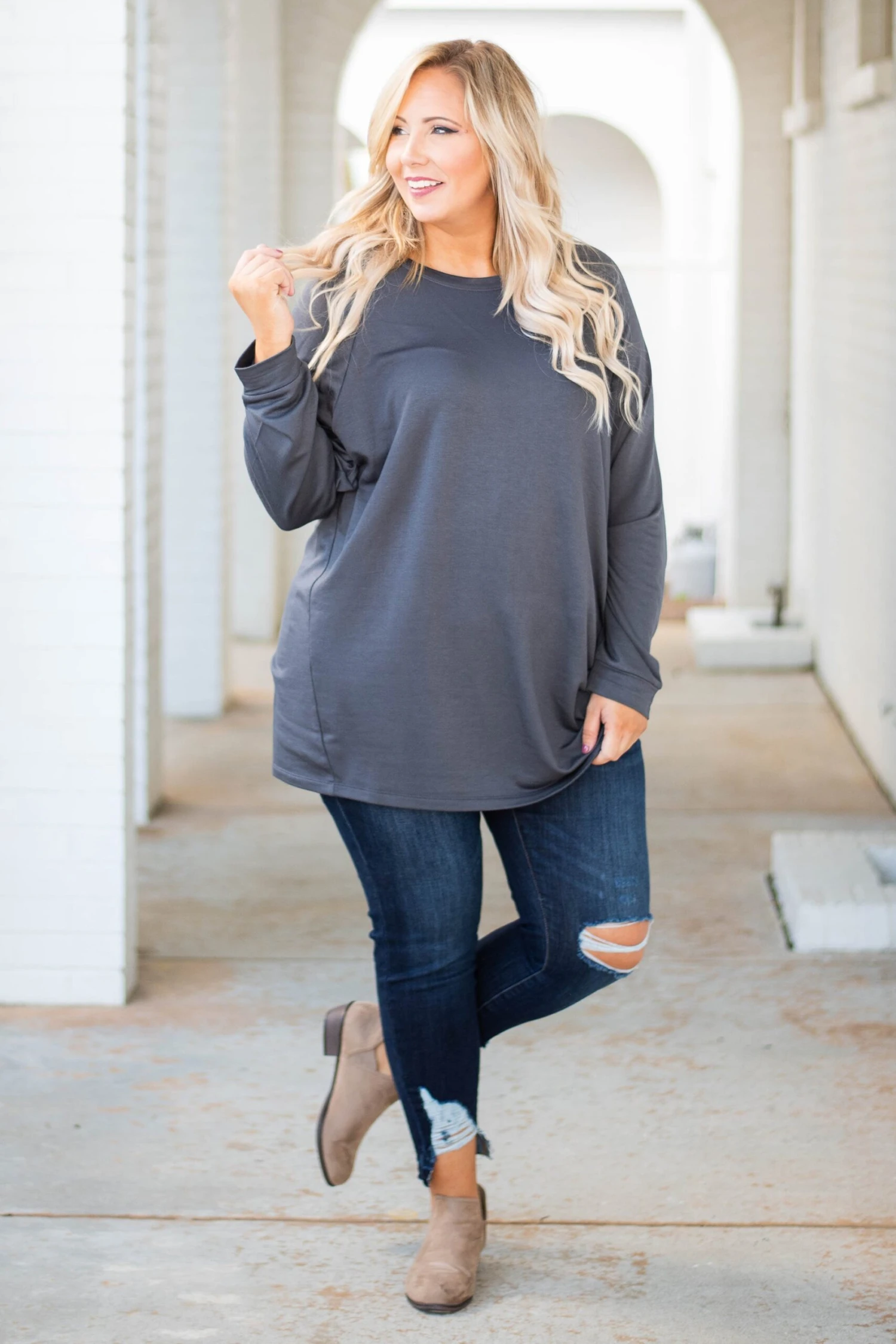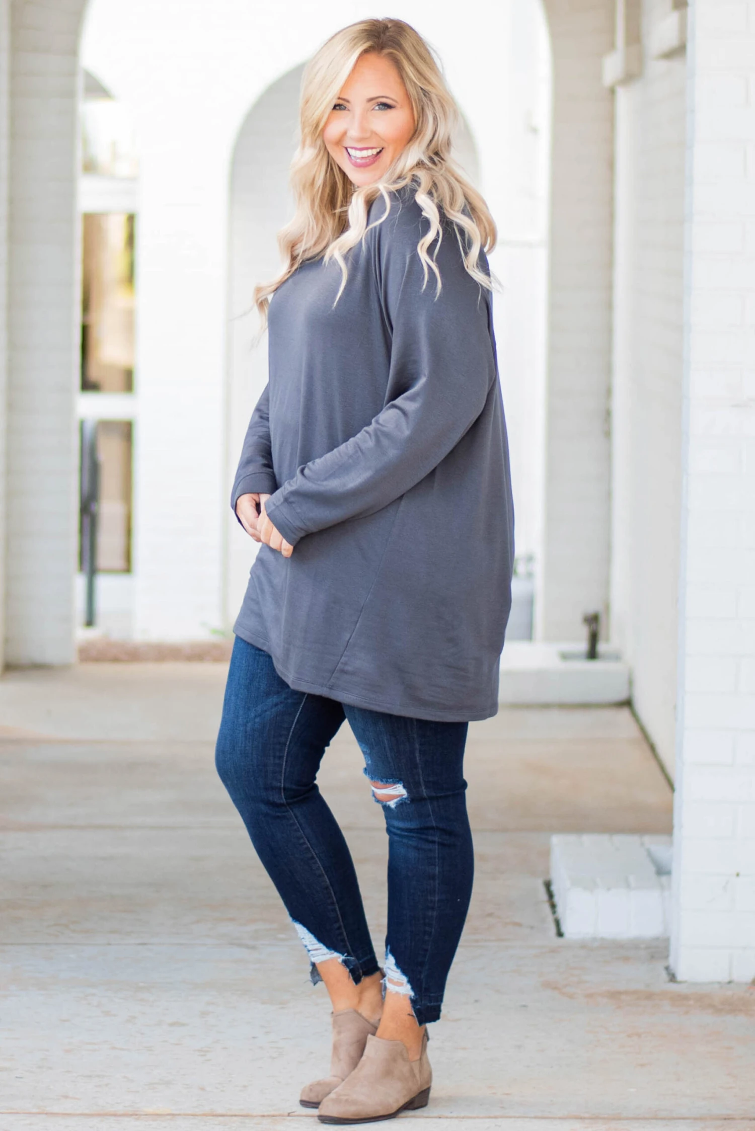 Your favorite tunic just got an upgrade! Introducing: The relaxed hem slouchy, now with a fleece-lined fabric! This top remains just as comfortable and versatile but has an added touch of warmth for a piece you can wear all season long! The material is soft and cozy with a relaxed fit you can wear everywhere! Not to mention how easy it is to style! Pair our fleece slouchy with your favorite accessories, comfy leggings, or chic booties. This top is a MUST in your wardrobe!