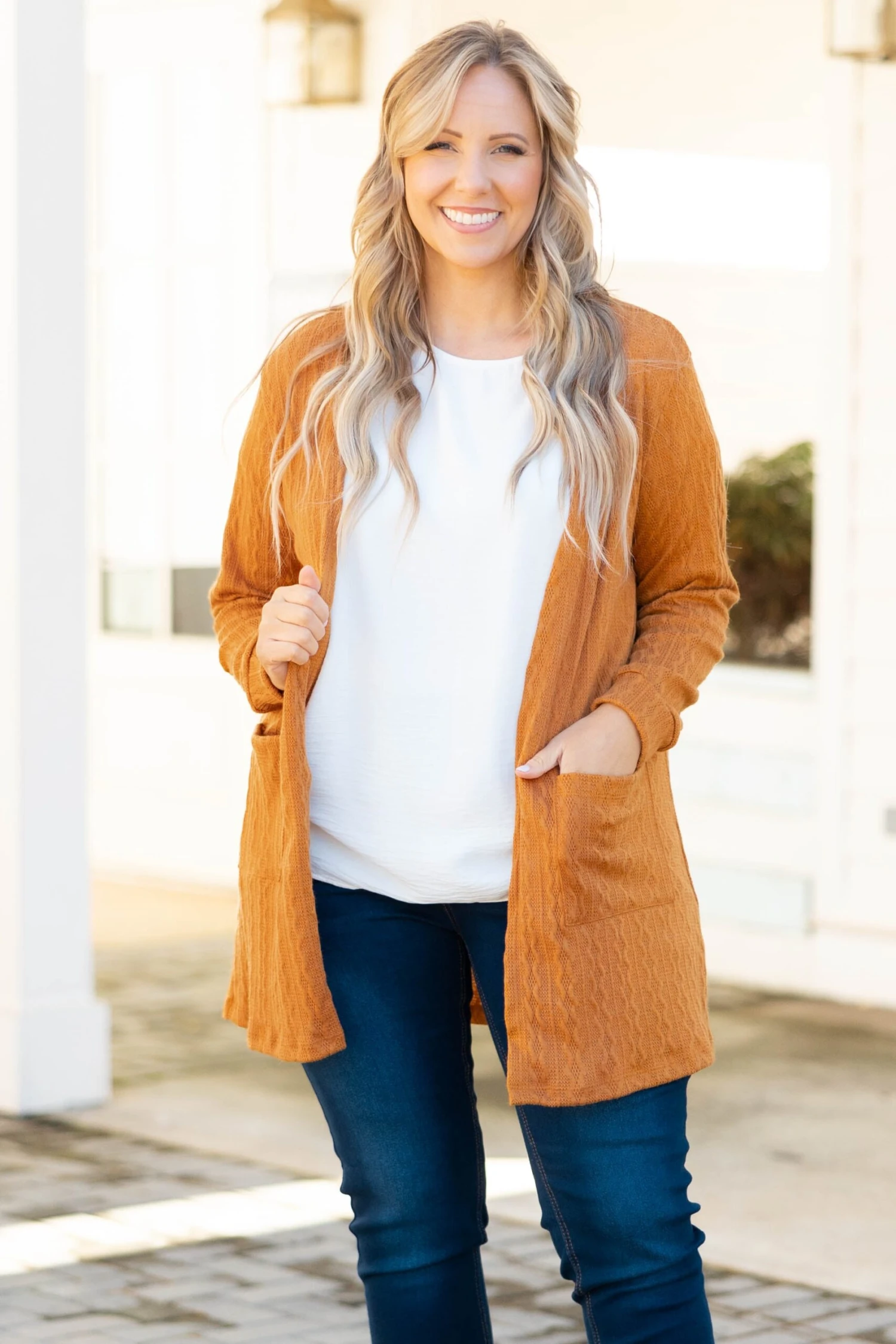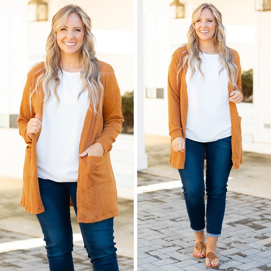 You’ll leave a lasting impression on the crowd in this beautiful cardigan! The mocha color and ribbed texture is SO cute and trendy! The stretchy material is so comfy and is perfect for every day wear! Style this cardigan with a solid top and skinnies for a casual, chic look!