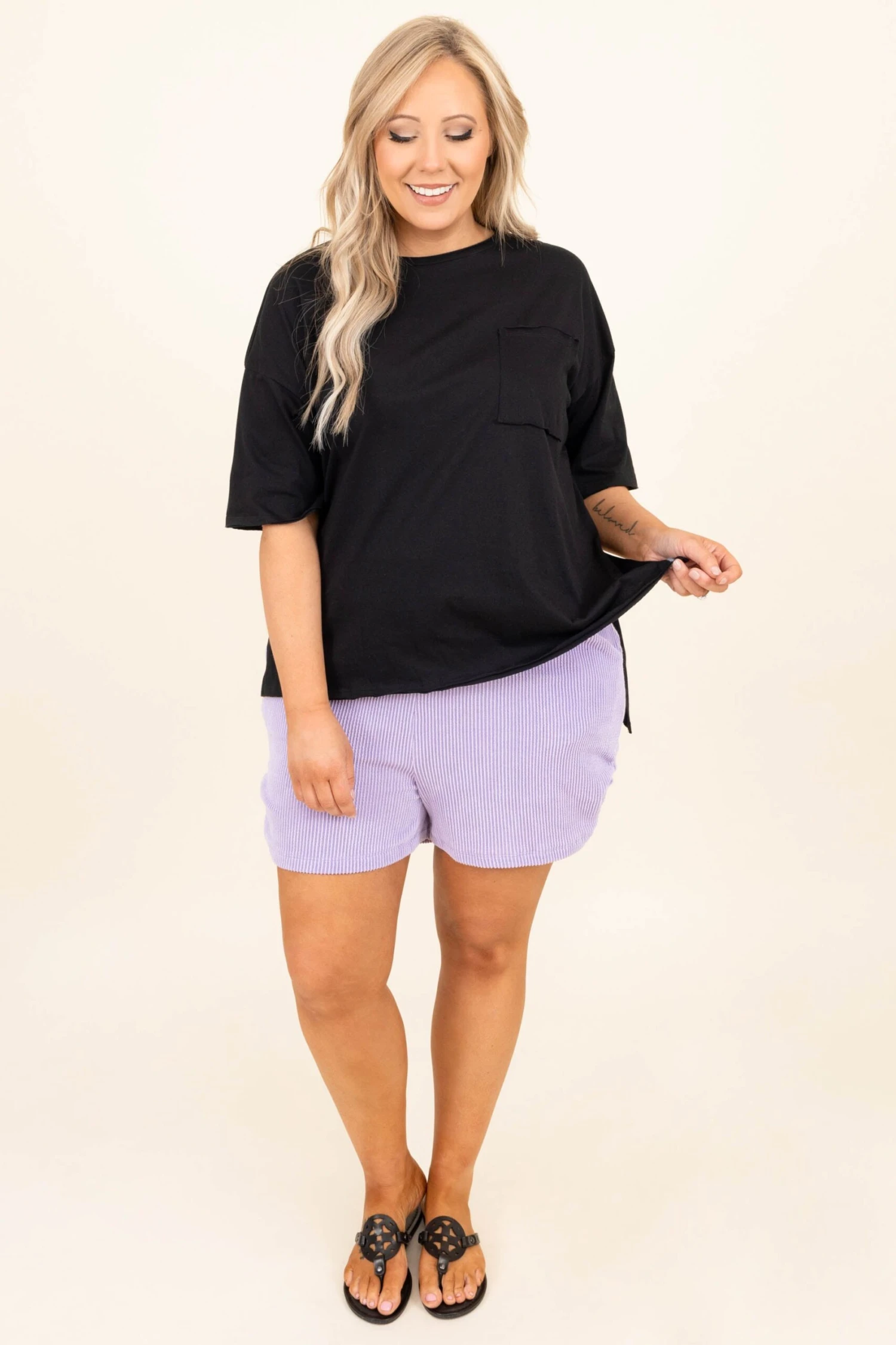Ride solo in these shorts! The lavender color is so stunning and the ribbed material is super trendy! These shorts are so soft you will want to wear them all day and the slightly cinched sides give these something extra!