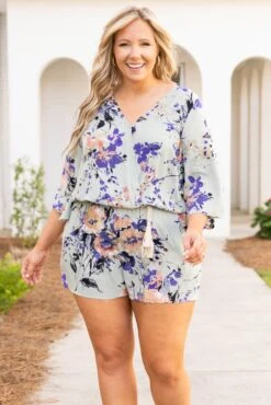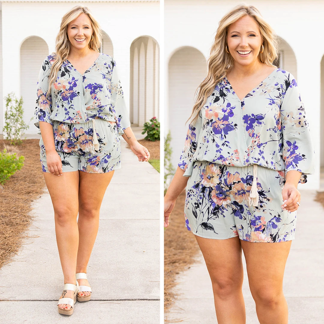 Throw on this romper and go! It has a pretty floral pattern with colors that are perfect for the season! It’s comfortable for all-day wear, has a figure-flattering fit, and can be styled with your favorite shoes and accessories! Simply wear this romper with sandals or wedges for an effortlessly chic look!Â