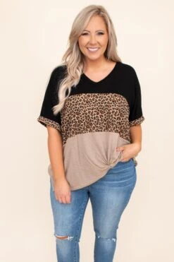 The rumors are true: We LOVE this top! This top has a chic color block pattern with a pop of leopard print we adore! It’s comfortable for all day wear, has an over sized fit, and features the cutest knotted hemline! Simply, pair this top with skinnies and flats for an effortlessly chic look!Â