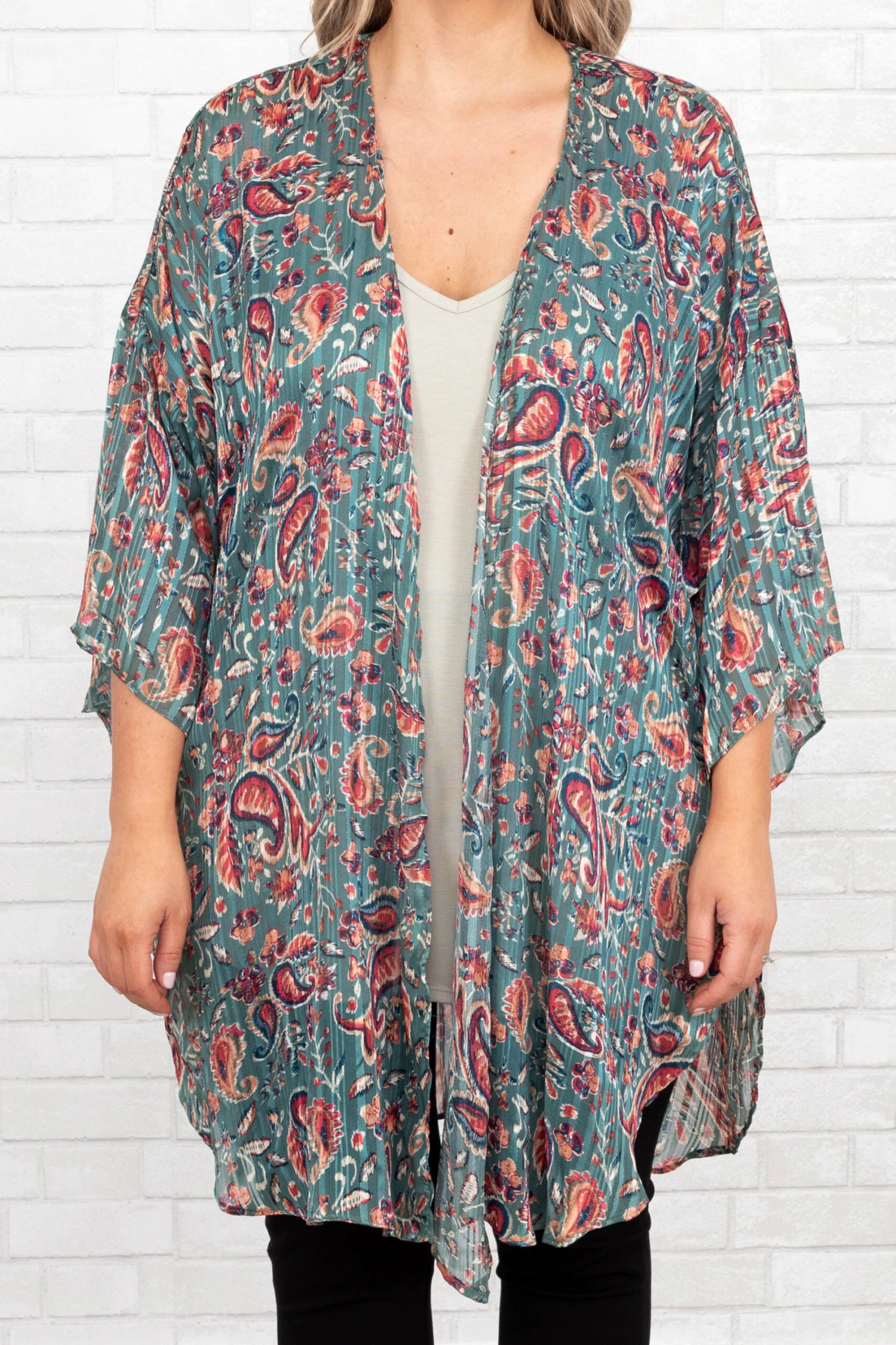 Getting dressed will be lighting fast with this cute cardi! It features a beautiful floral design that makes styling it a breeze! It is light and airy which makes it comfortable for all-day wear and the fit is super flattering! This cardigan can take you from work to date night in a snap! Pair this top with your favorite blouse and shorts for a chic look!