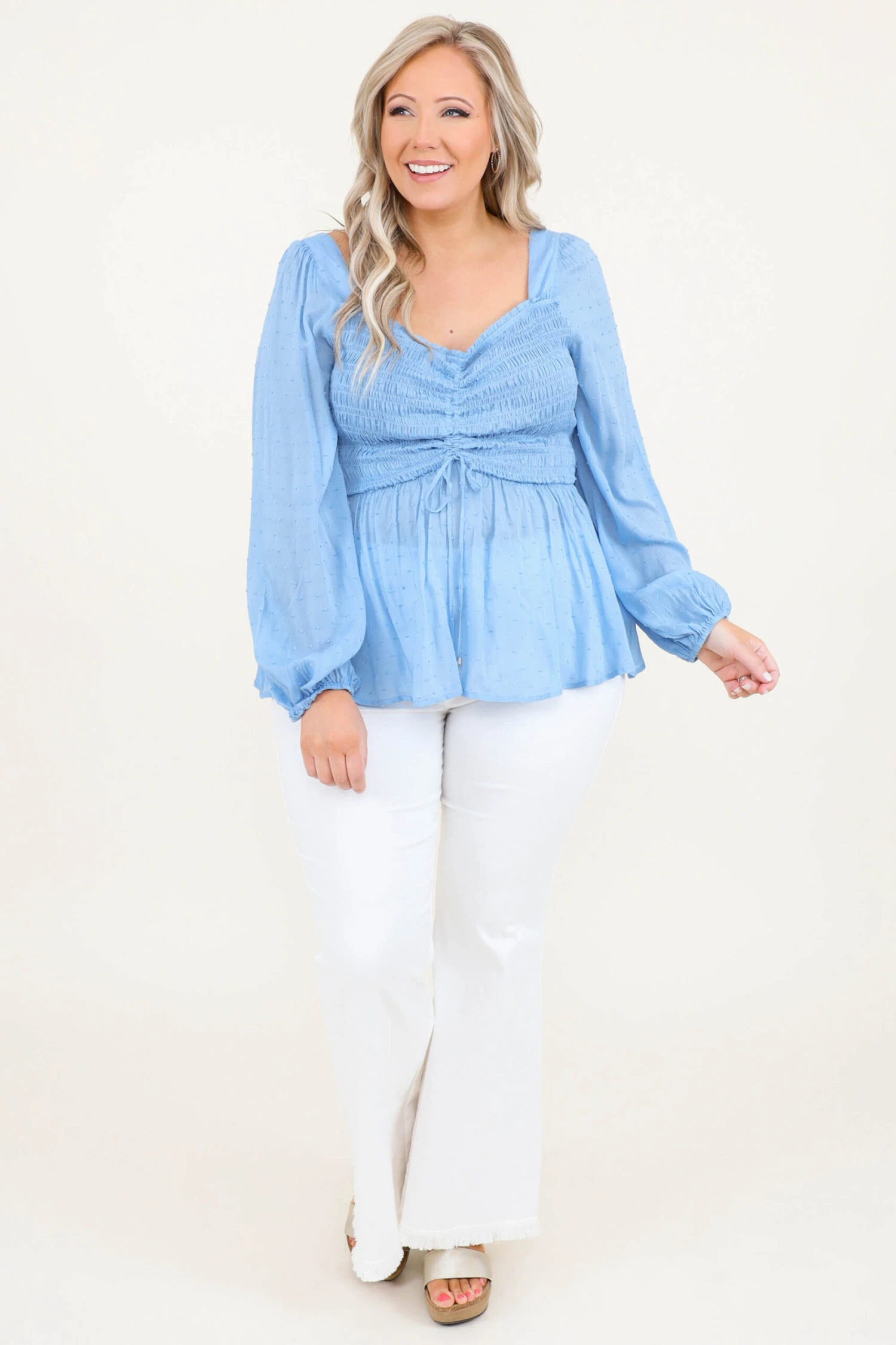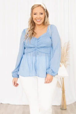 You’ll be rushing back to get this top if you don’t get it today! This top has a classic blue color and a super soft, comfy fabric! Not to mention the adorable bubble sleeve and ruching fabric on the chest which is sure to keep you looking nice and stylish all season long! Pair it with skinnies and booties for a trendy seasonal outfit!