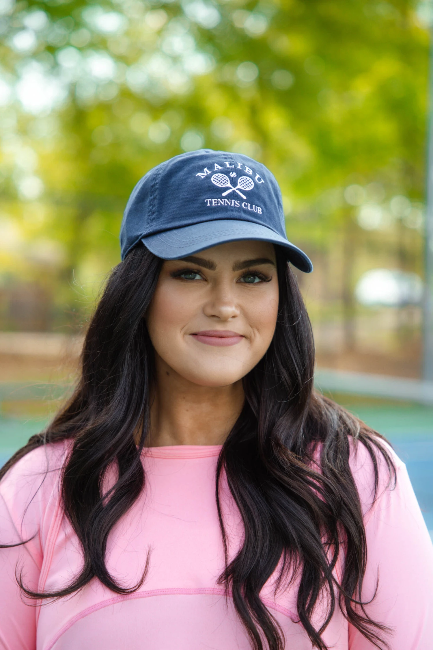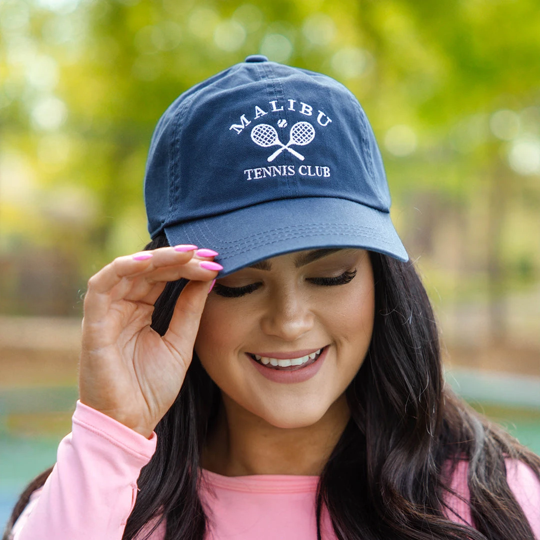 We want to see you in this cutie! This cap has a beautiful navy color and a sweet embroidered design that is perfect for the tennis lovers out there! The comfy fit and sleek design is great for all day wear!