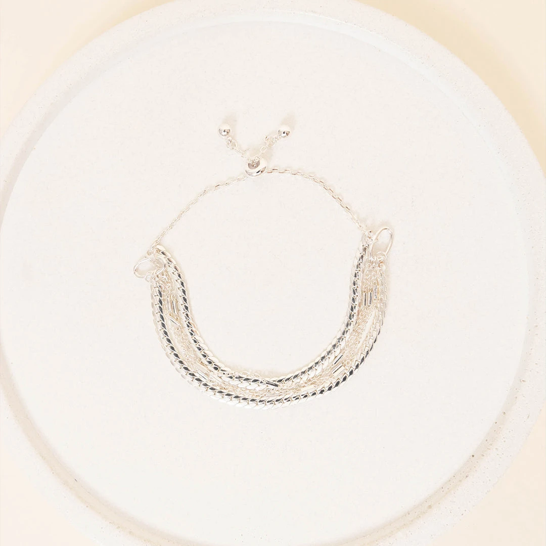 This beautiful and timeless bracelet is crafted from sterling silver, featuring an adjustable chain design for a perfect fit! Its delicate design makes for an elegant and sophisticated accessory! With its fashionable look and quality construction, this bracelet is sure to be a favorite for years to come!