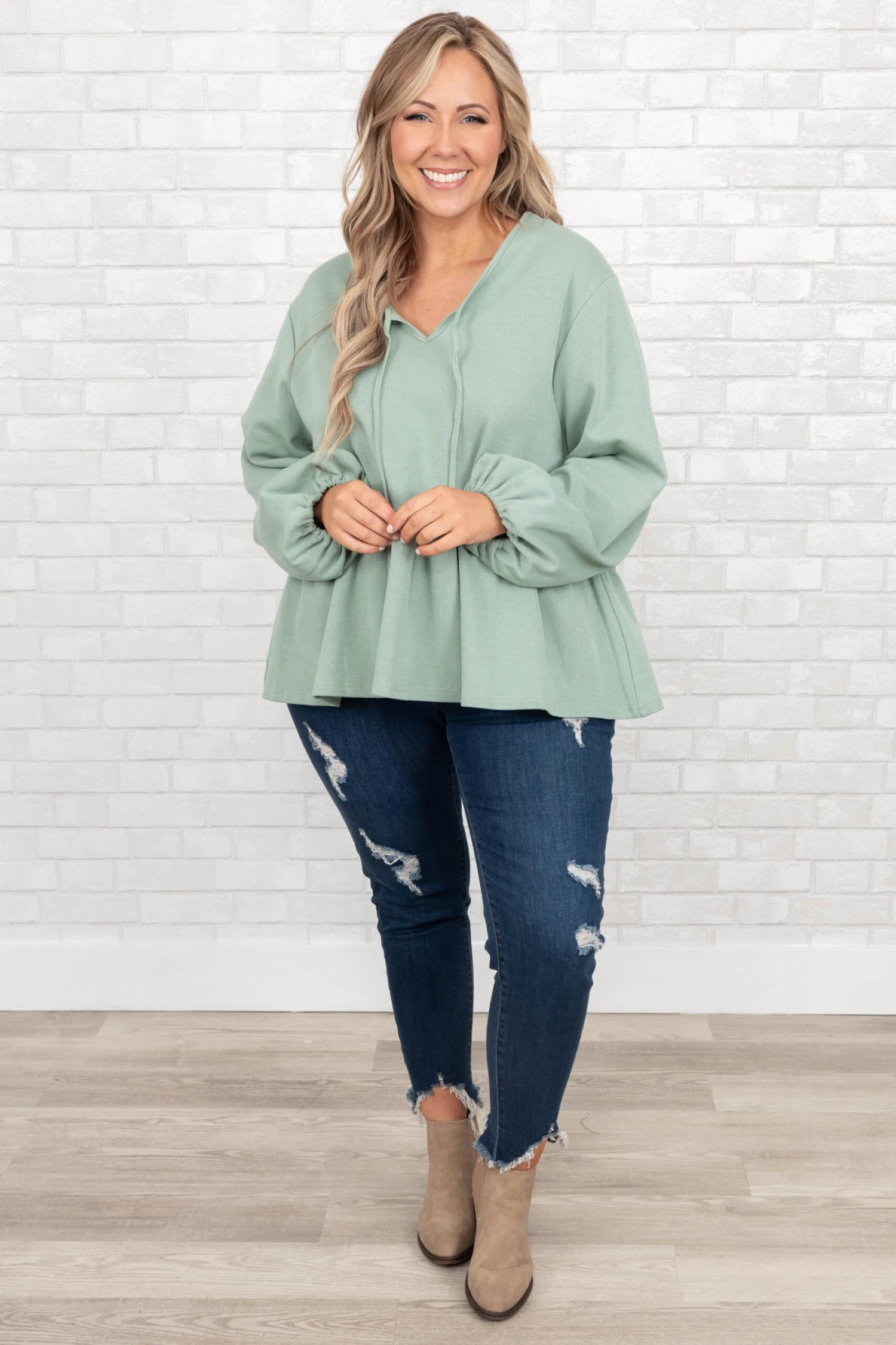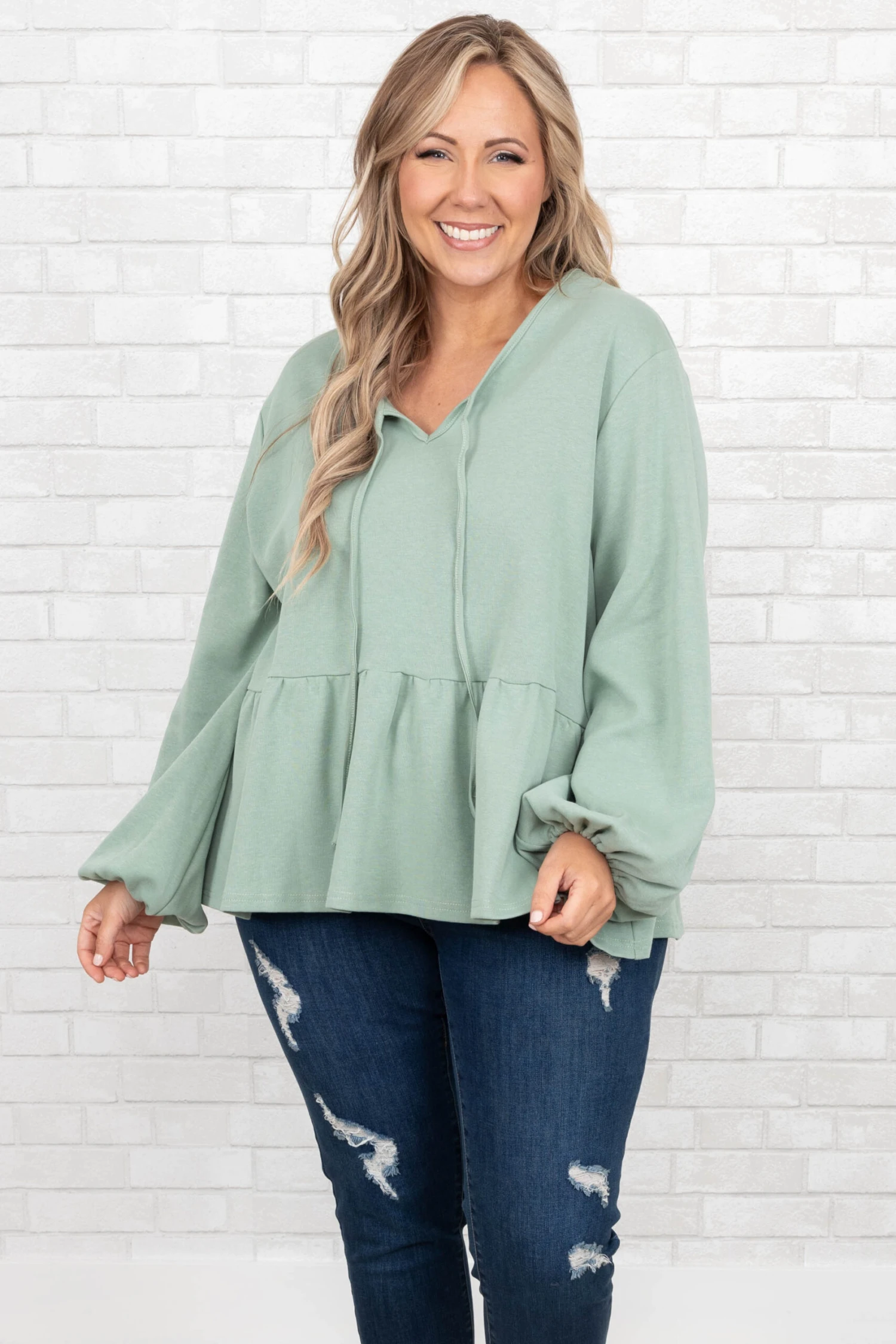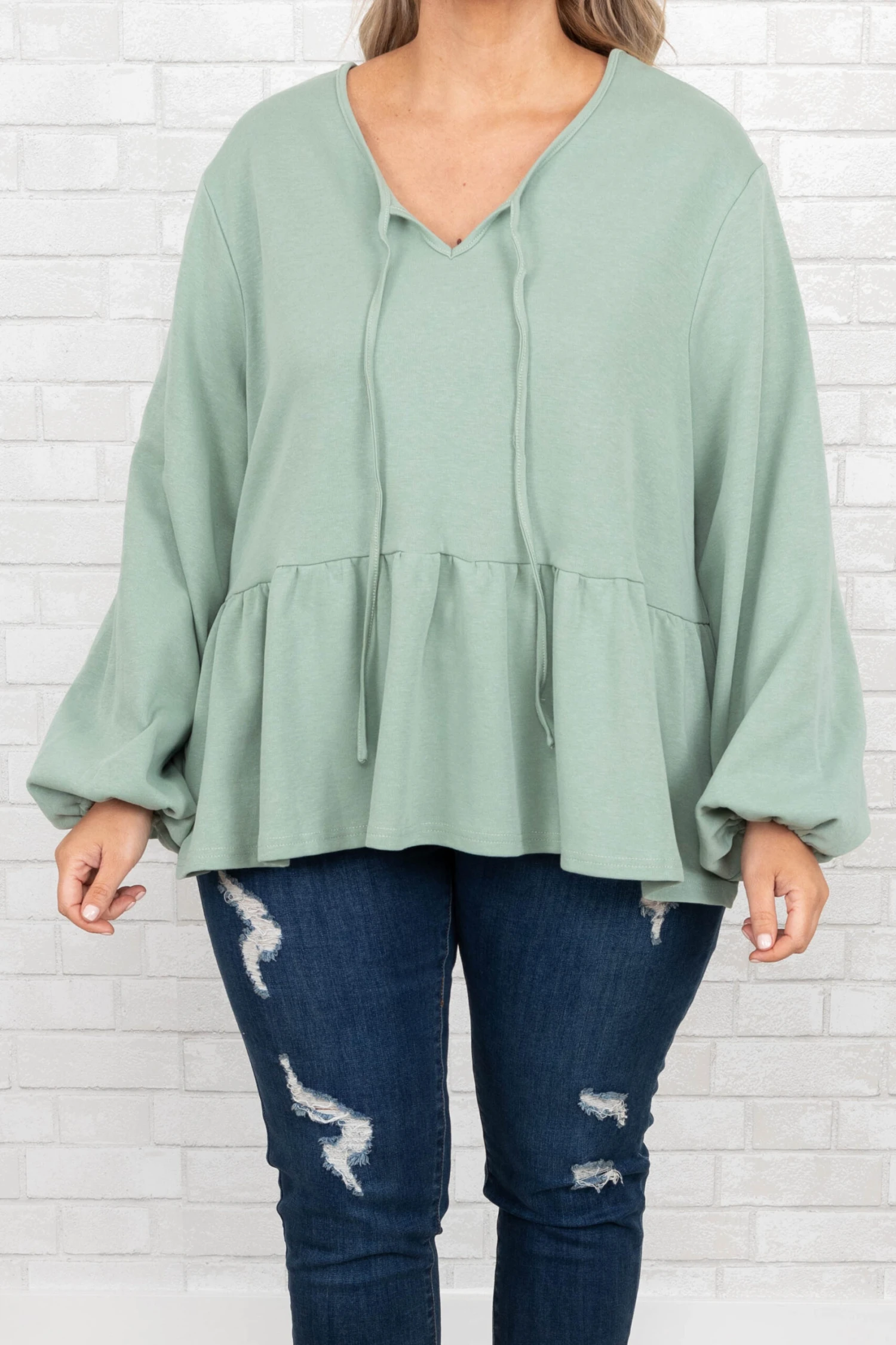 We simply LOVE this beautiful top! This top has a lovely green color with a babydoll style that is super trendy and sweet! The bubble sleeves and ties are so chic! Style this this beauty with distressed skinnies and booties for an easy everyday look!