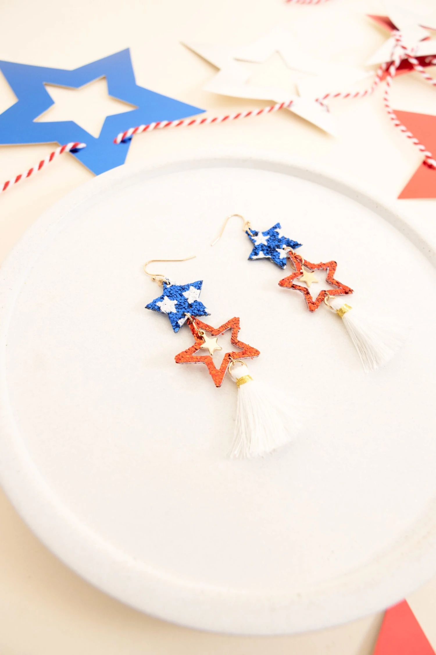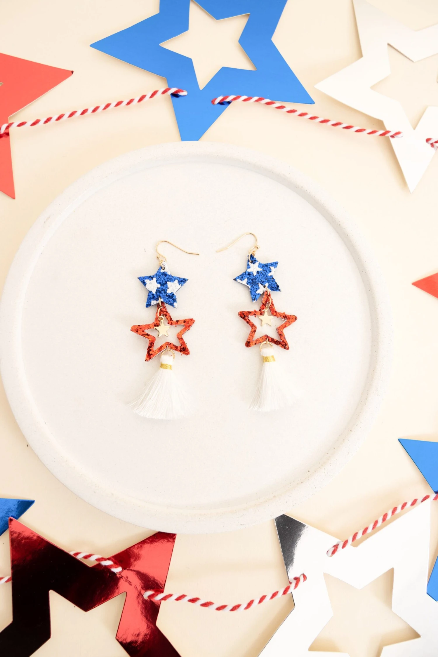 These beautiful earrings feature bold colors and a star-shaped design, bringing a unique touch to any outfit! Handcrafted with a dangle design these earrings are sure to be a crowd favorite!