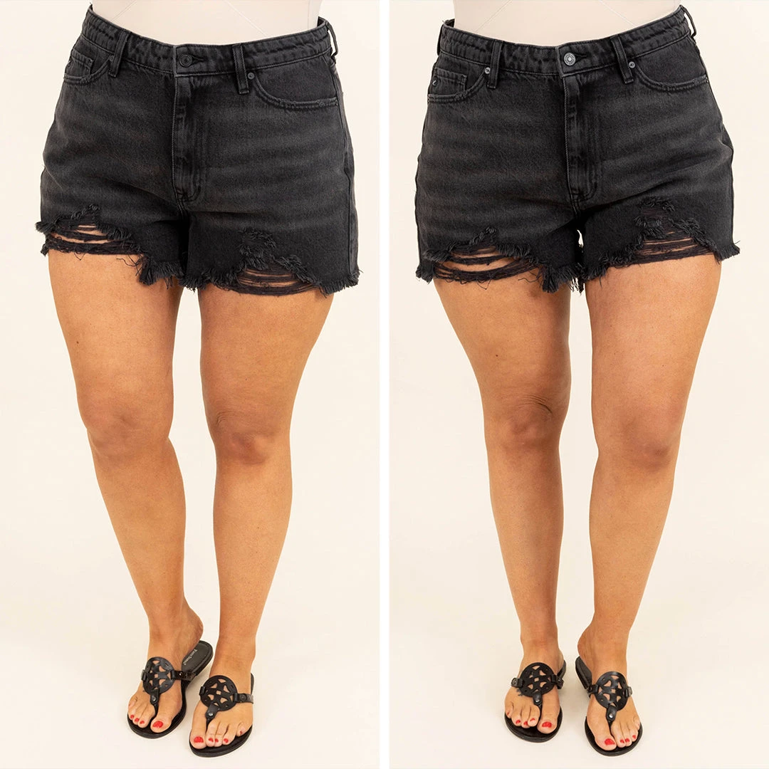 If you are looking for your new fave pair of shorts, look no further! These shorts have a dark gray color with a super trendy distressed design! They are super comfy and easy to style with a cute top and accessories for a casual chic look!