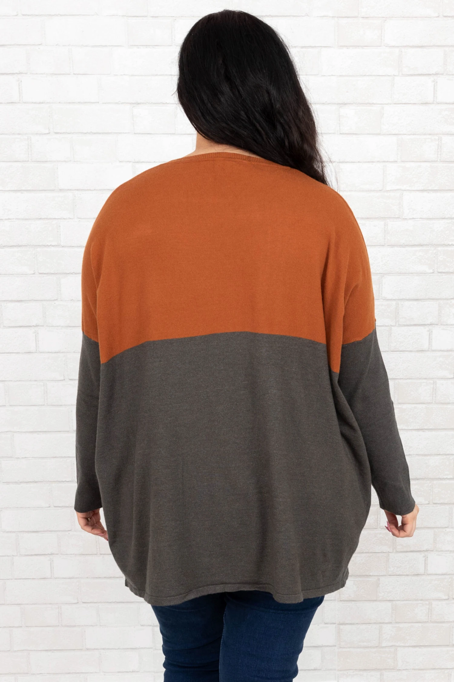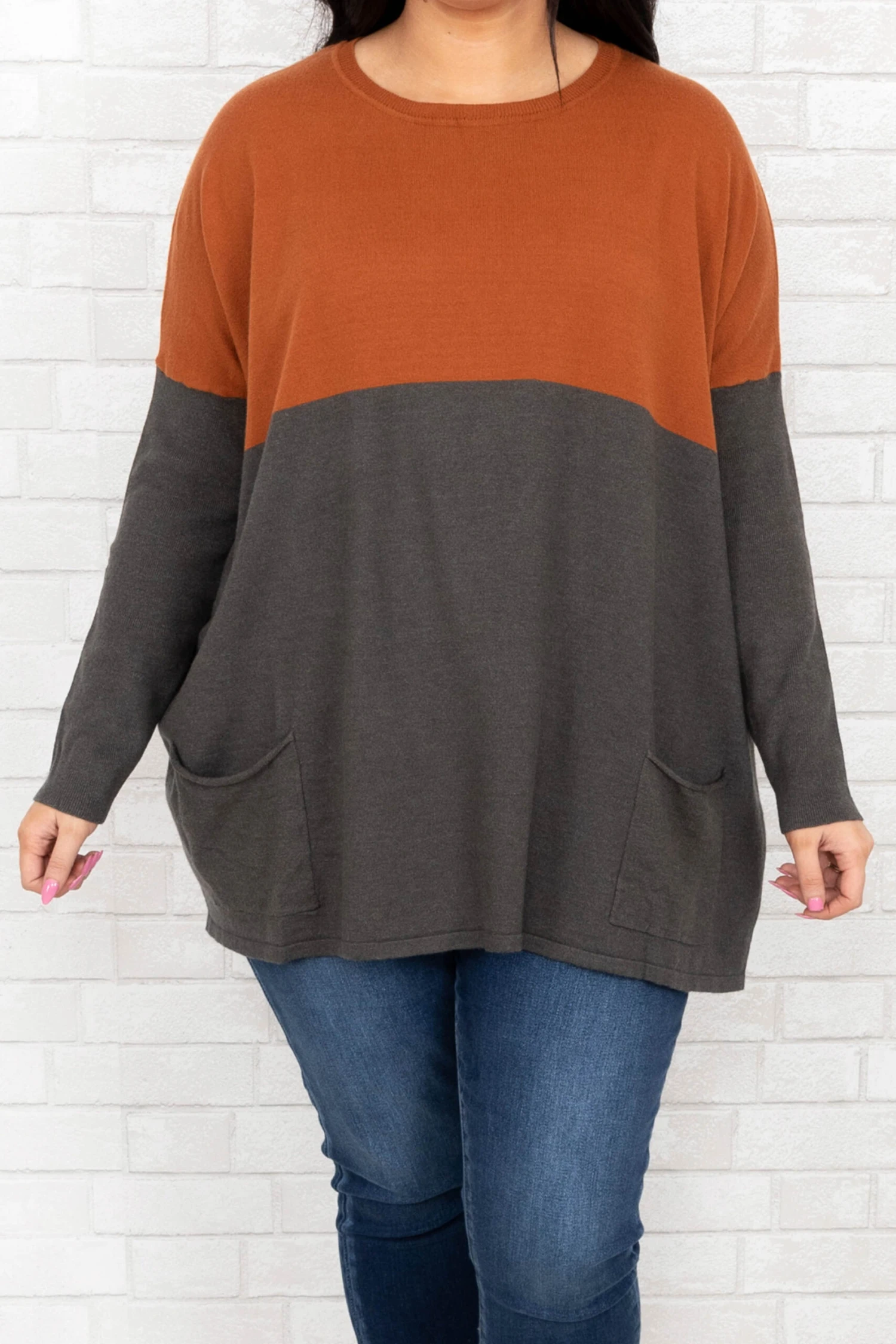 This sweater has everything you have been wanting!  It has the cutest color block print with beautiful bold colors! You can dress this sweater up or down and pair it with everything in your wardrobe! It’s comfortable for all-day wear, and has a figure-flattering fit & pockets we love! Pair this sweater with cute skinnies and booties!