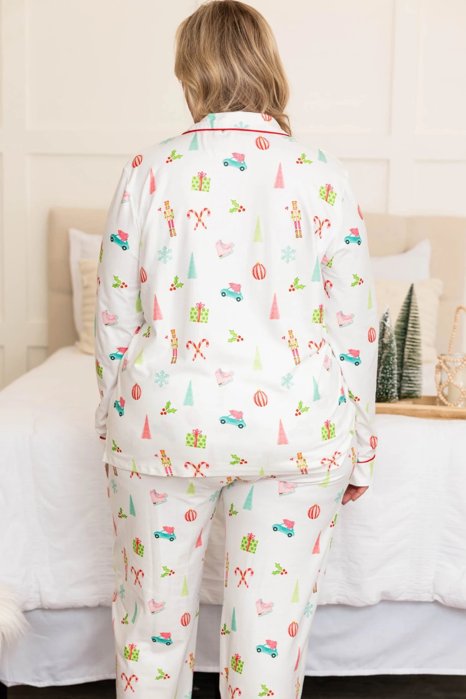 Let us make your wishes come true with this adorable pajama top! This top has a classic white color and it is SUPER comfy! The festive pattern and cozy, flattering fit is perfect for lounging around all season long!