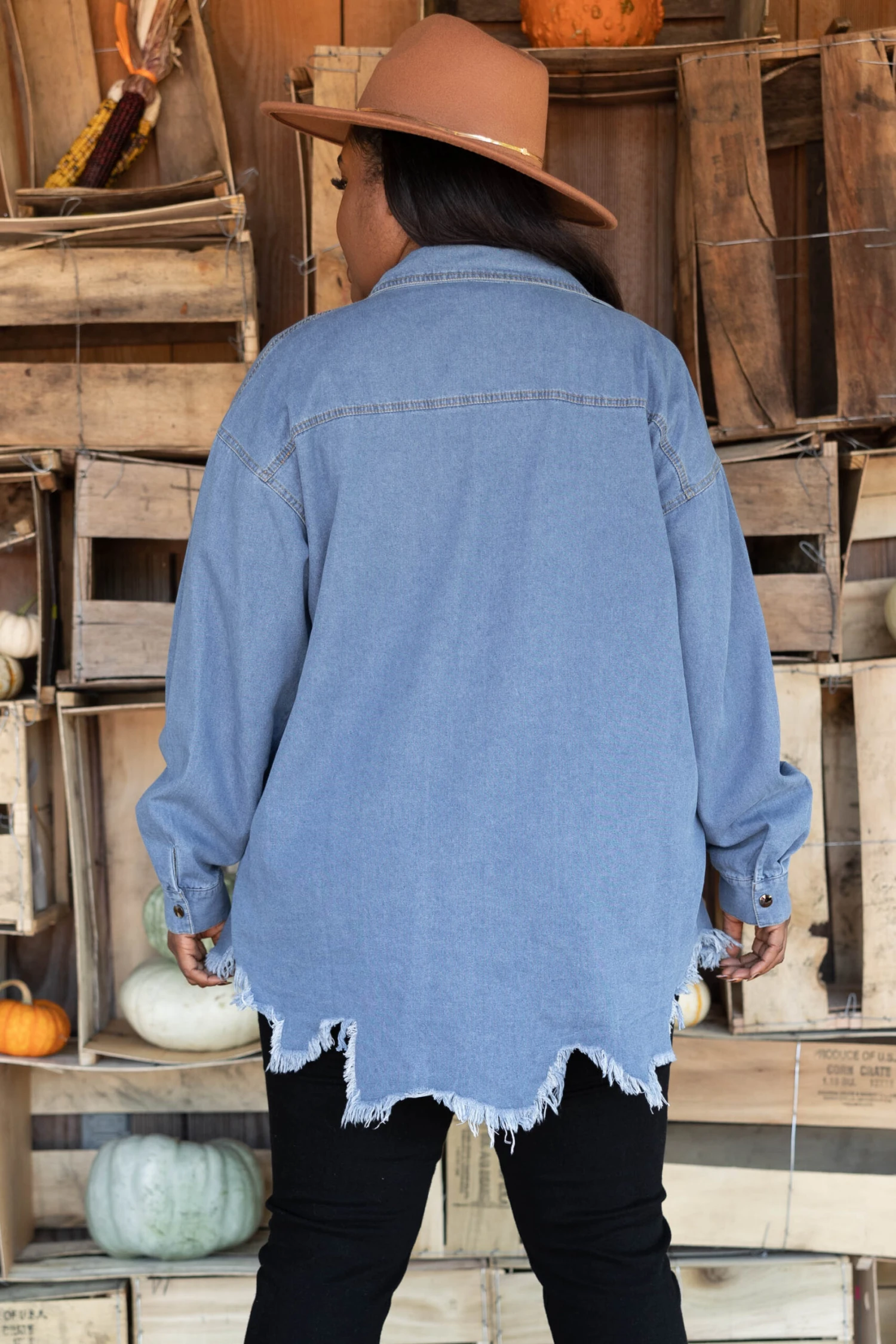 You’ll feel like somebody else in this gorgeous jacket! This lightweight, denim jacket has a trendy distressed hemline that is perfect for the season! Throw this cutie on all season long as your new favorite layering piece!Â