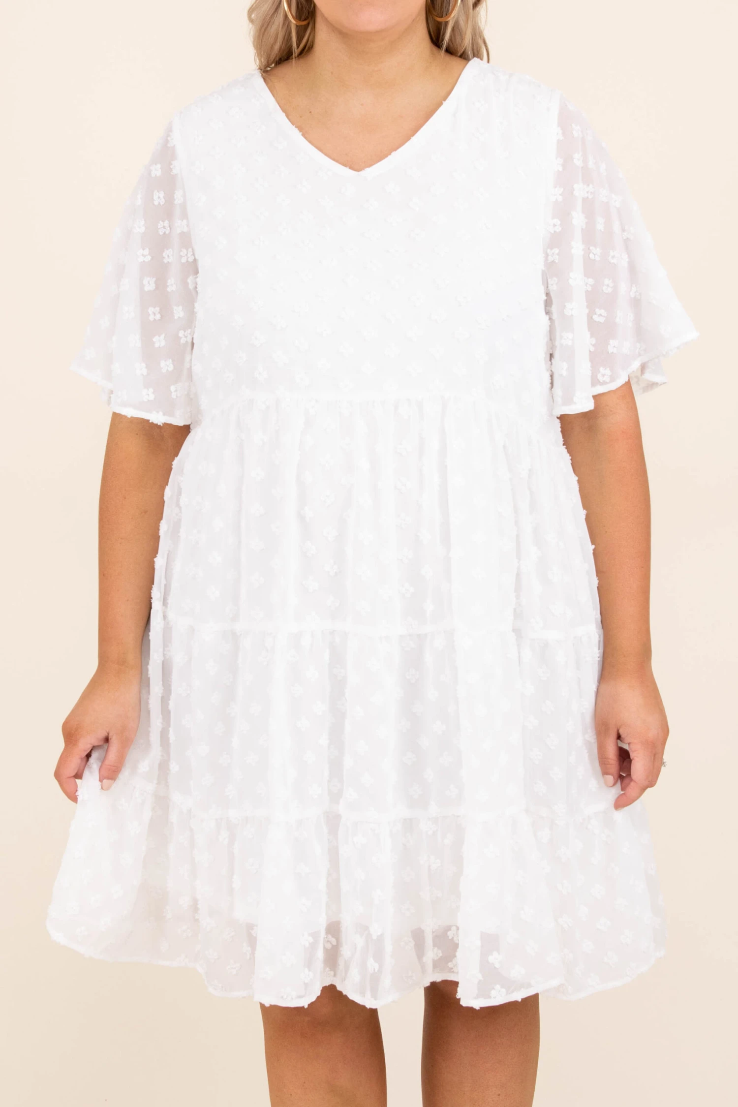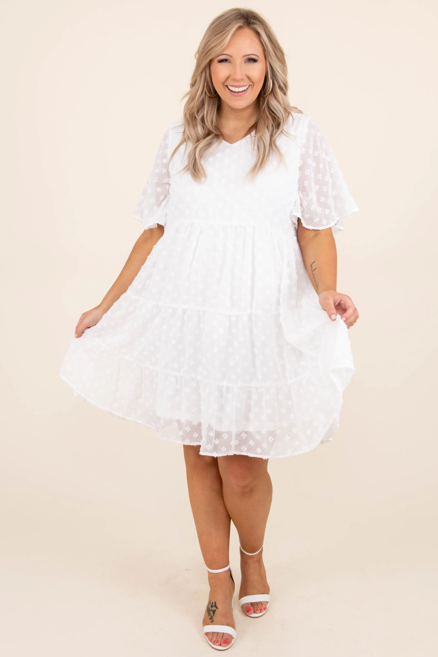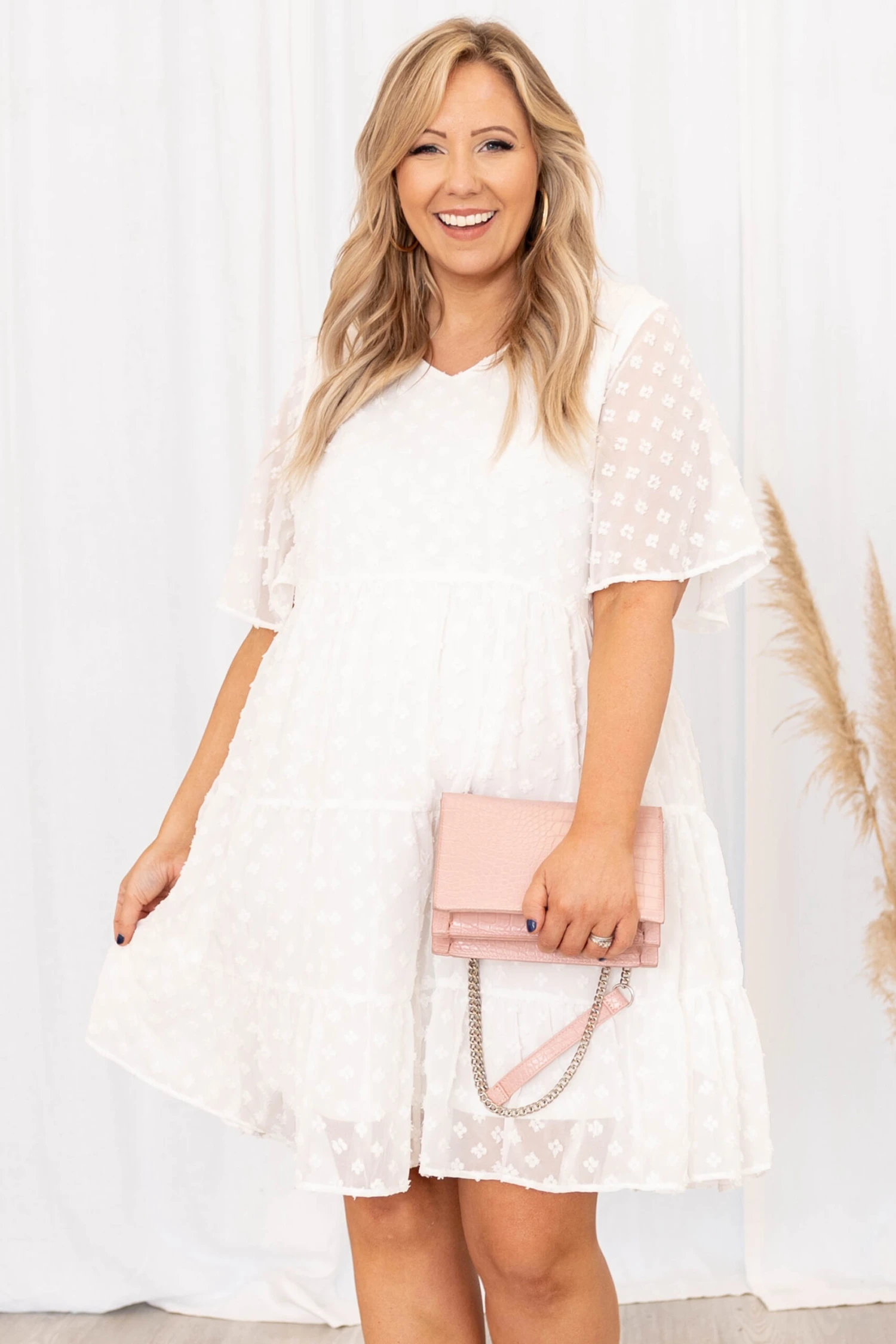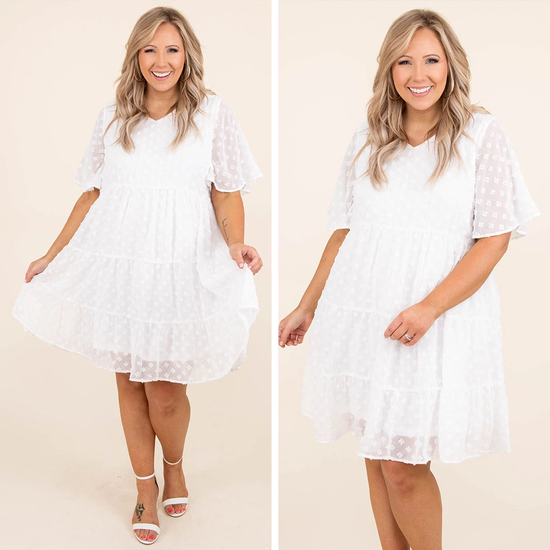 We have nothing but love for this dress! It has a pretty polka dot pattern with a white color you can style for every occasion! It’s comfortable for all-day wear, has a figure-flattering fit, and features the sweetest design! Pair this dress with flats or booties for your next night out!Â