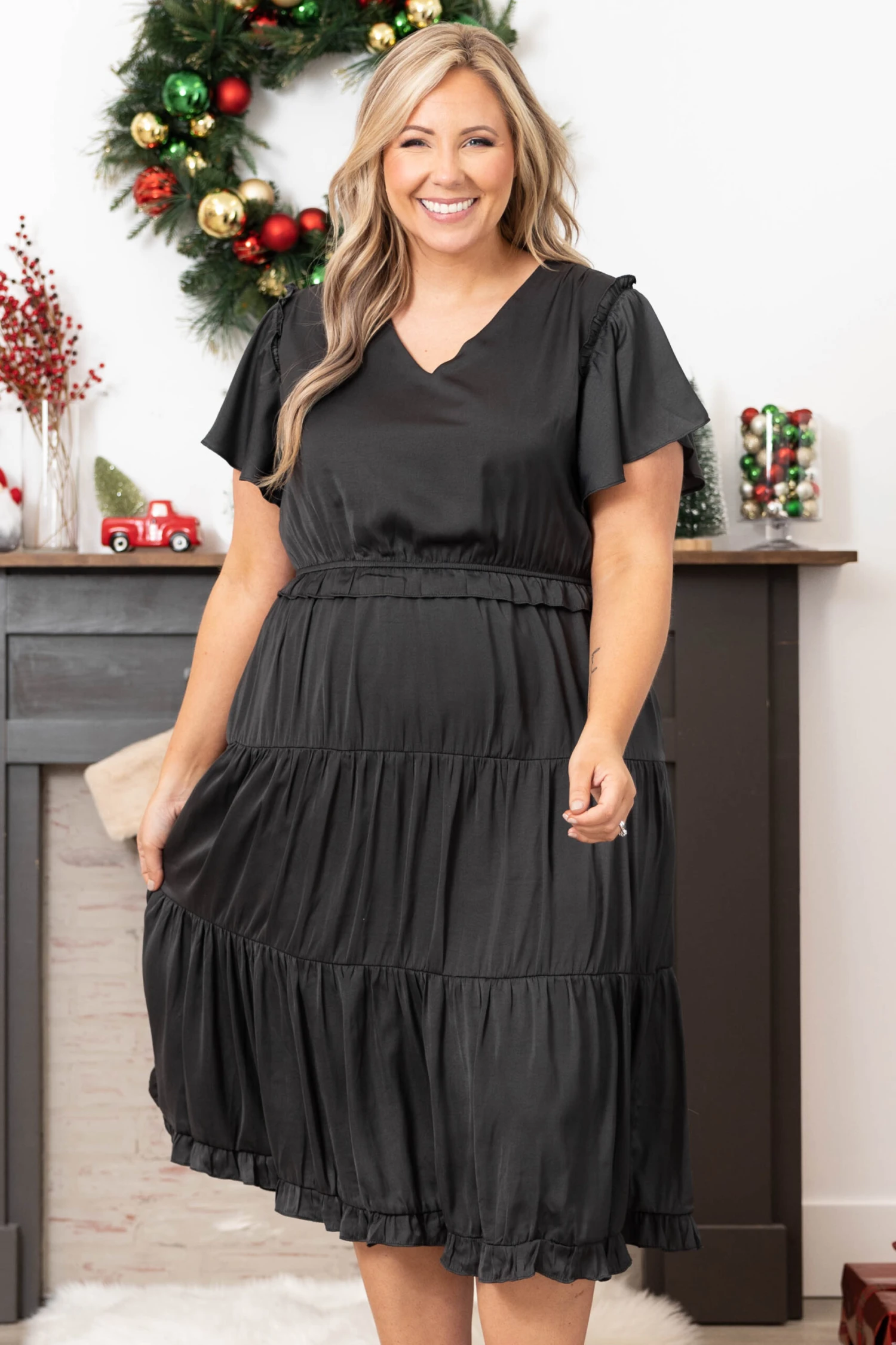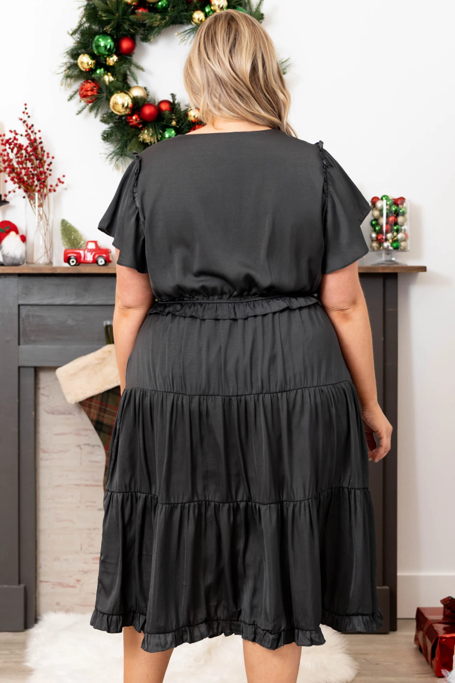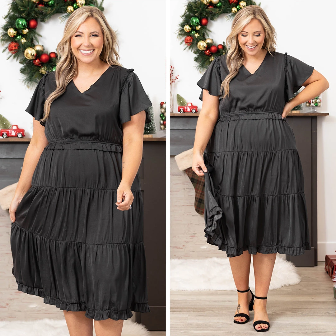 Everyone has a southern soul deep inside so embrace it in this dress! The charcoal color is always classic and the tiered style with the ruffle hem and sleeves is so sweet! This cutie has a cinched waist to flatter everyone and the silky feel is so lux! Style this with some wedges and gold accessories for a stunning look!