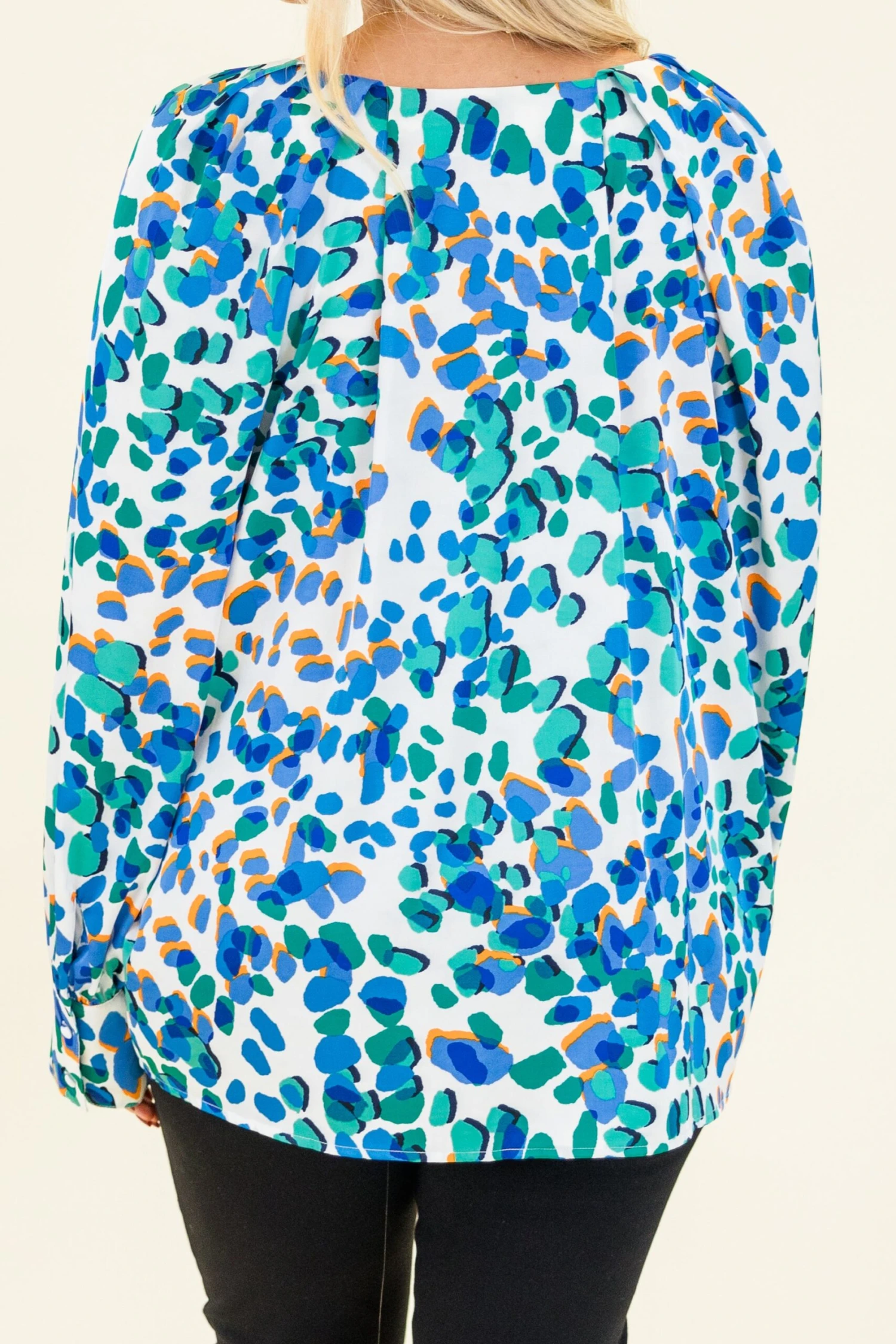 Elevate your wardrobe with our chic Splashes Of Color Blouse in vibrant blue! This long sleeve blouse features a feminine floral print, flattering v neckline, and delicate button cuff sleeve detail! Perfect for adding a pop of color to any outfit!