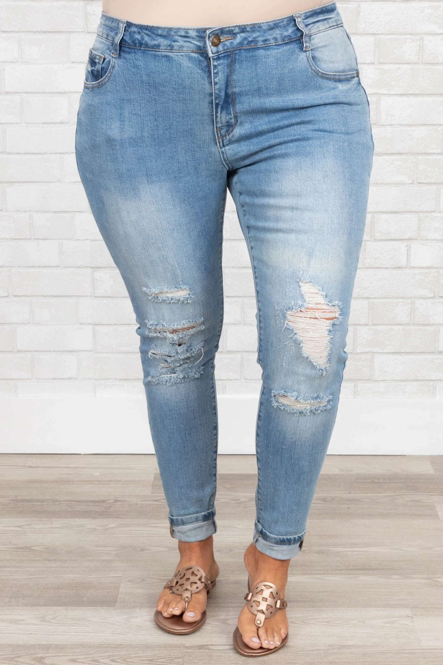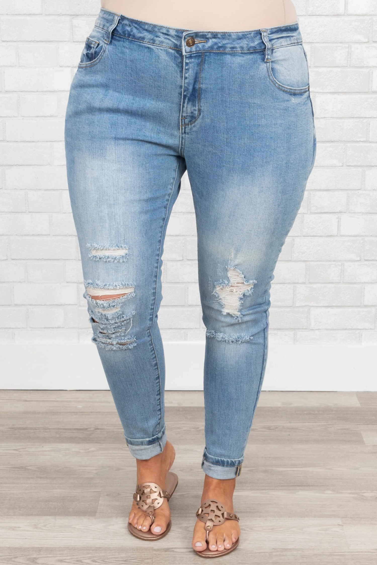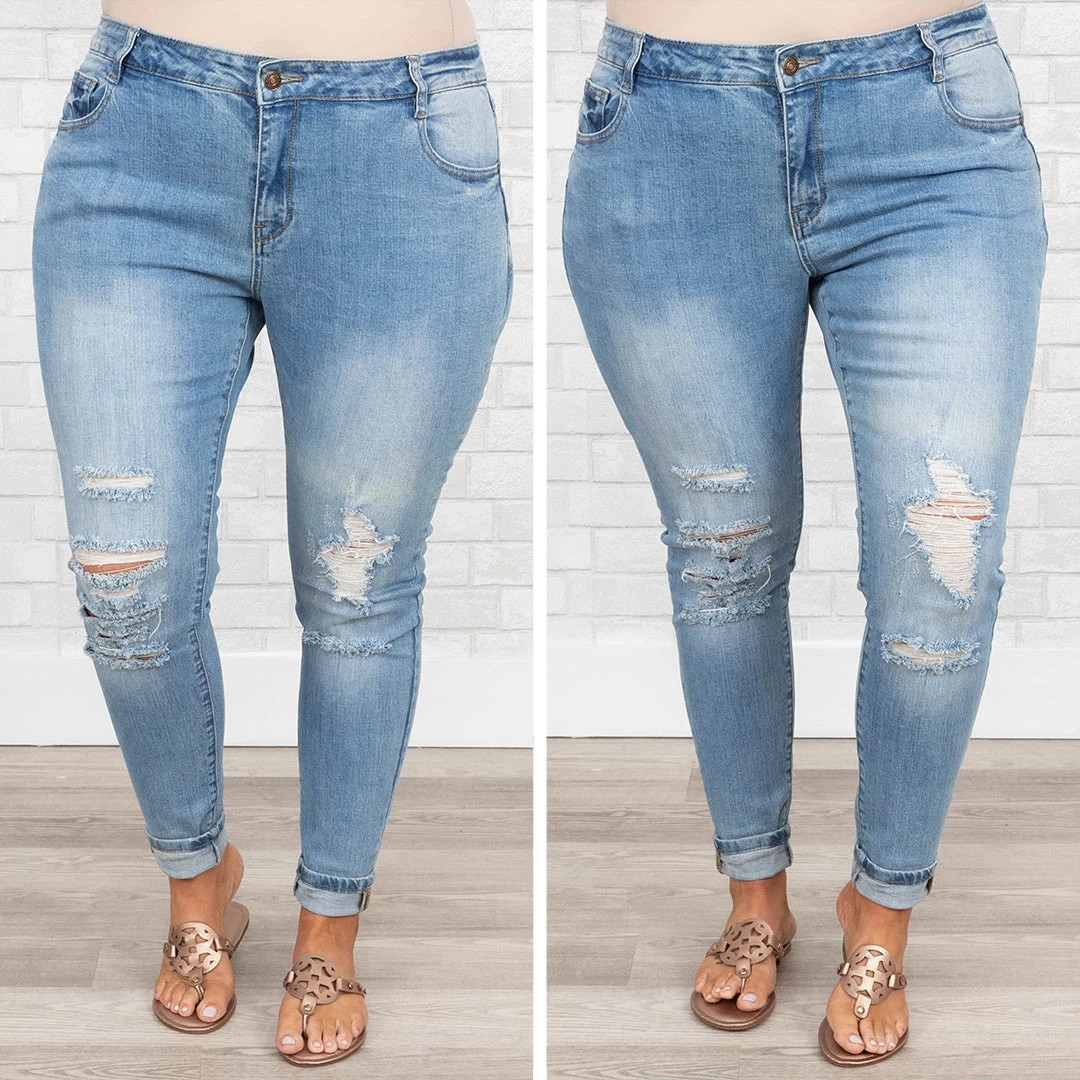 This is your moment to grab these gorgeous jeans! They have a medium wash that is a season favorite! They are stretchy, figure flattering, and great for all day wear! Style these jeans with a sassy shirt or a graphic tee for a classic chic look!