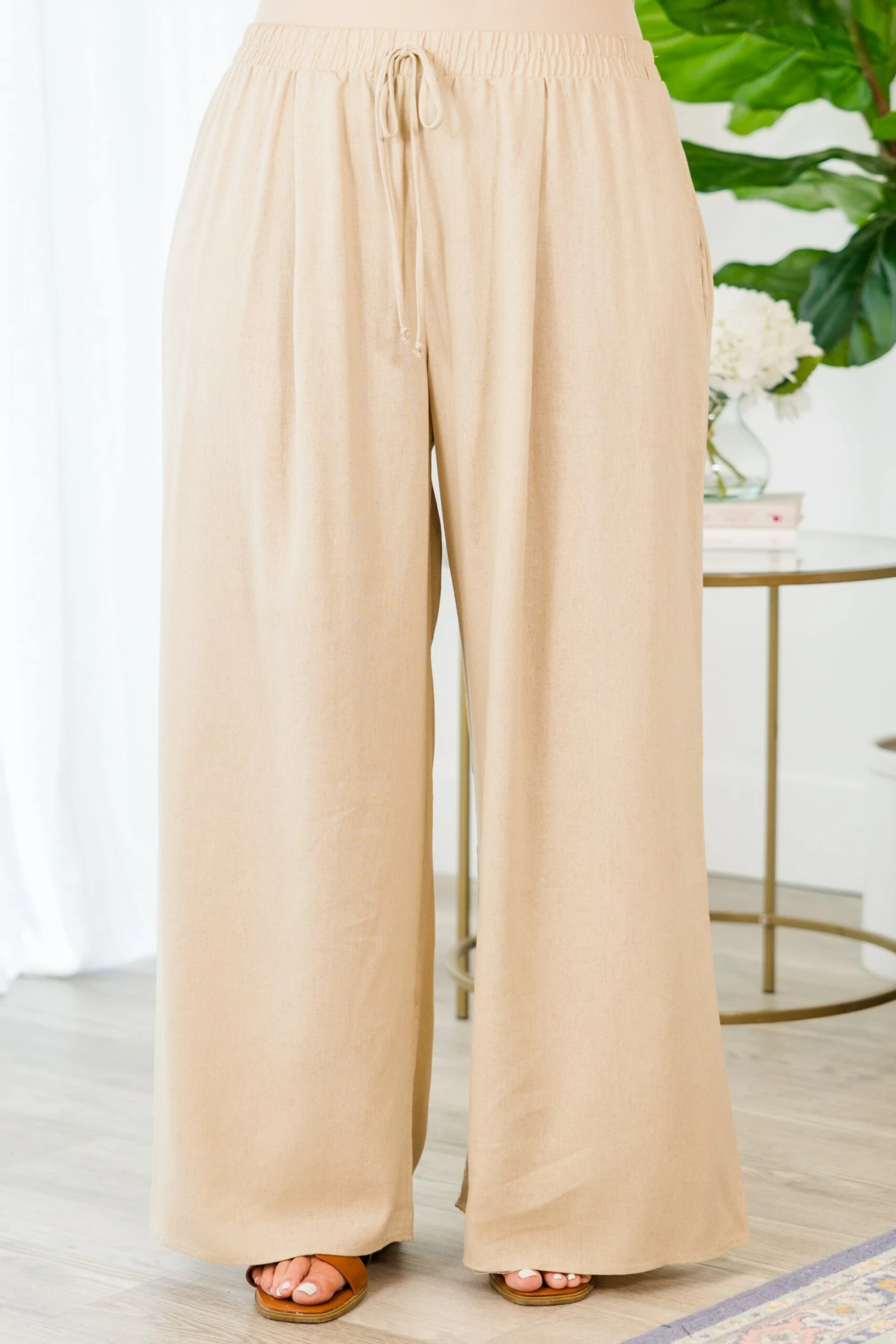 Everyone will be stealing glances at you in these gorgeous pants! Expertly designed for comfort and style, these pants feature a smocked waistline for a perfect fit! The neutral tan color pairs effortlessly with any top, while the flowy fit allows for easy movement! Ideal for a casual day out, these pants are a must-have in your wardrobe!