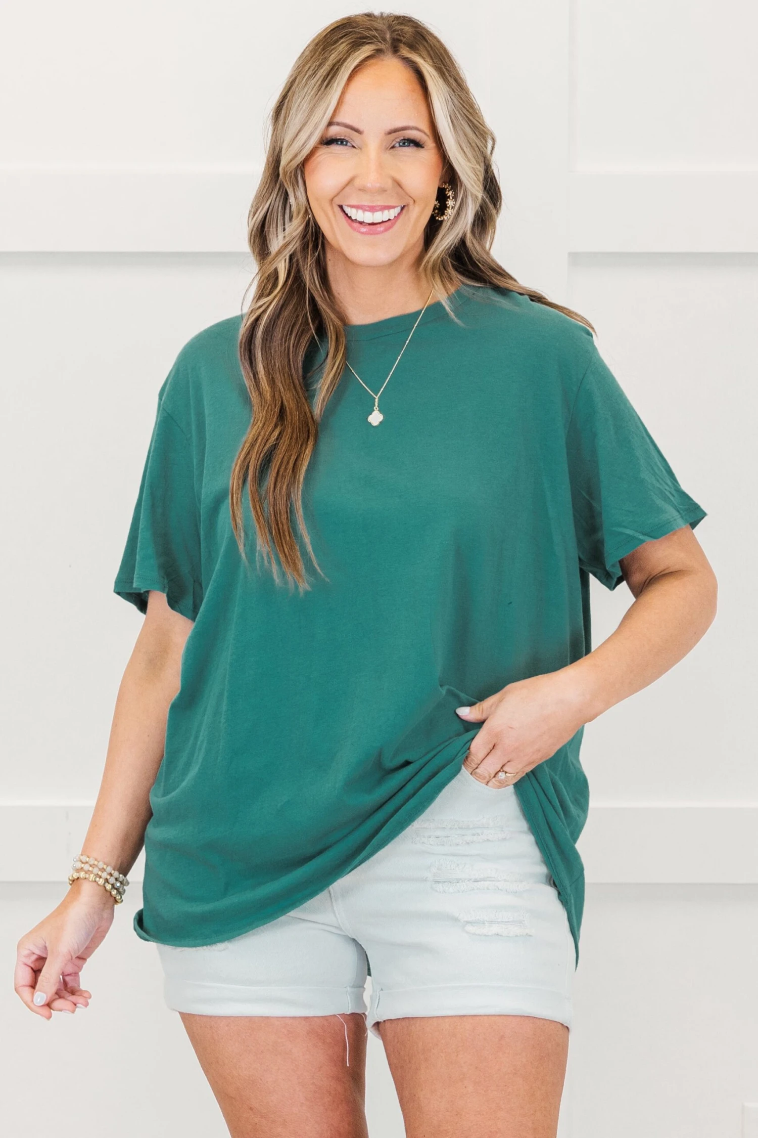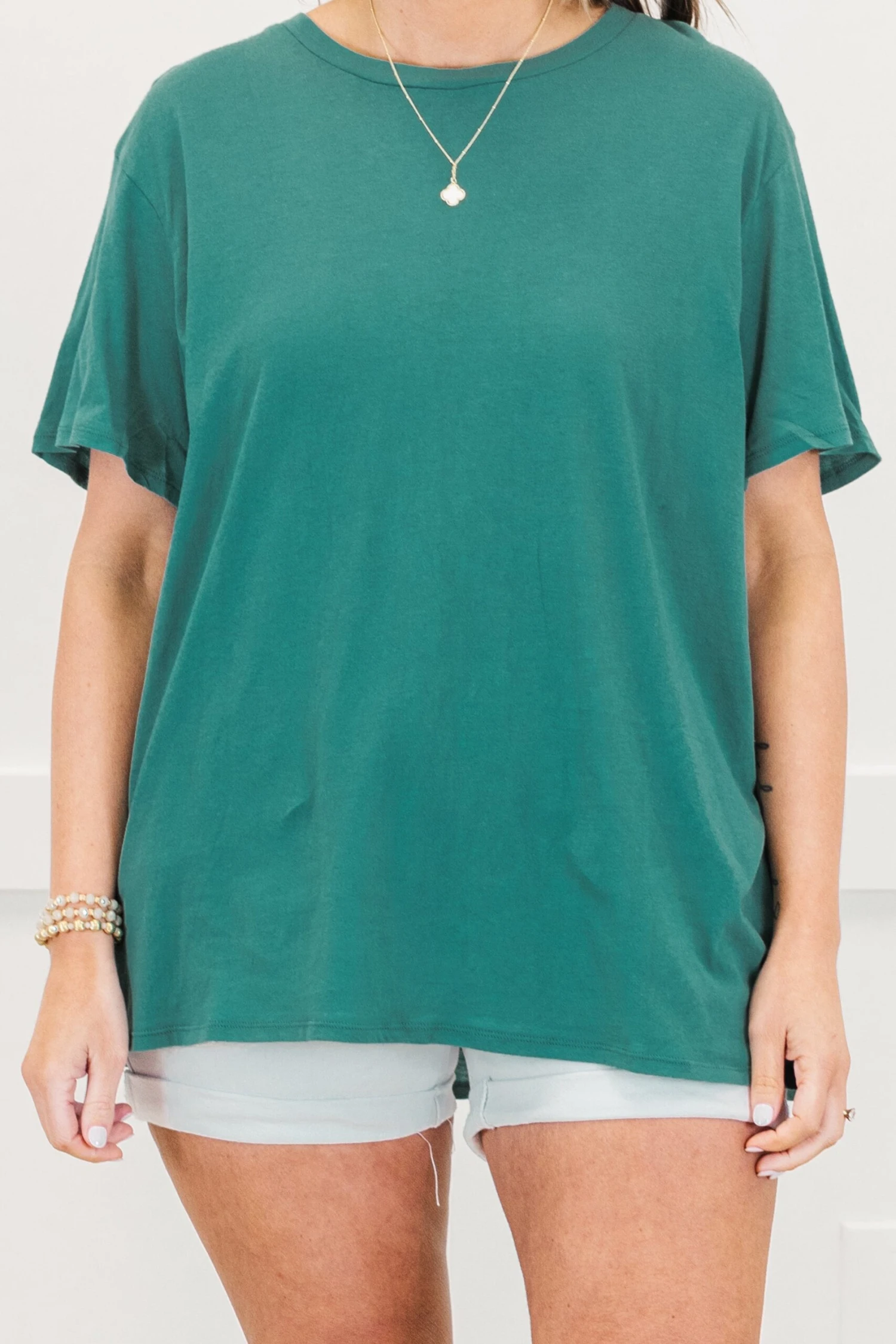 Add some luck to your wardrobe with this tee in a beautiful dusty teal! This staple piece features a classic crew neck design – perfect for any casual outfit!