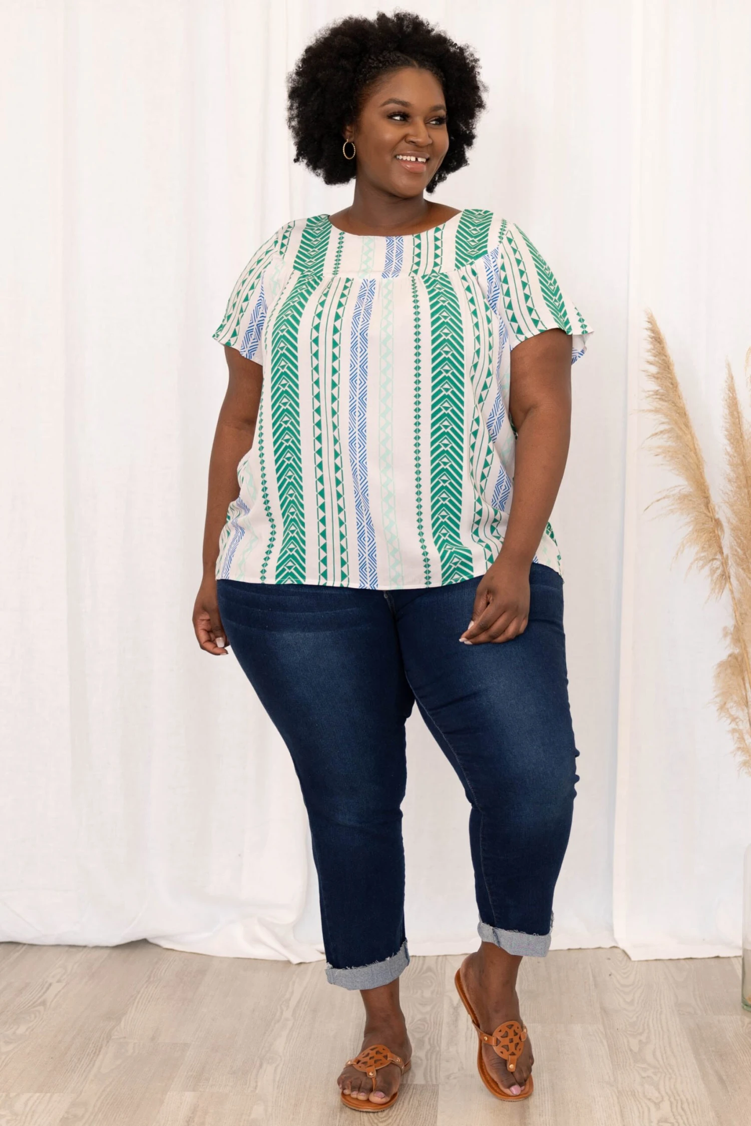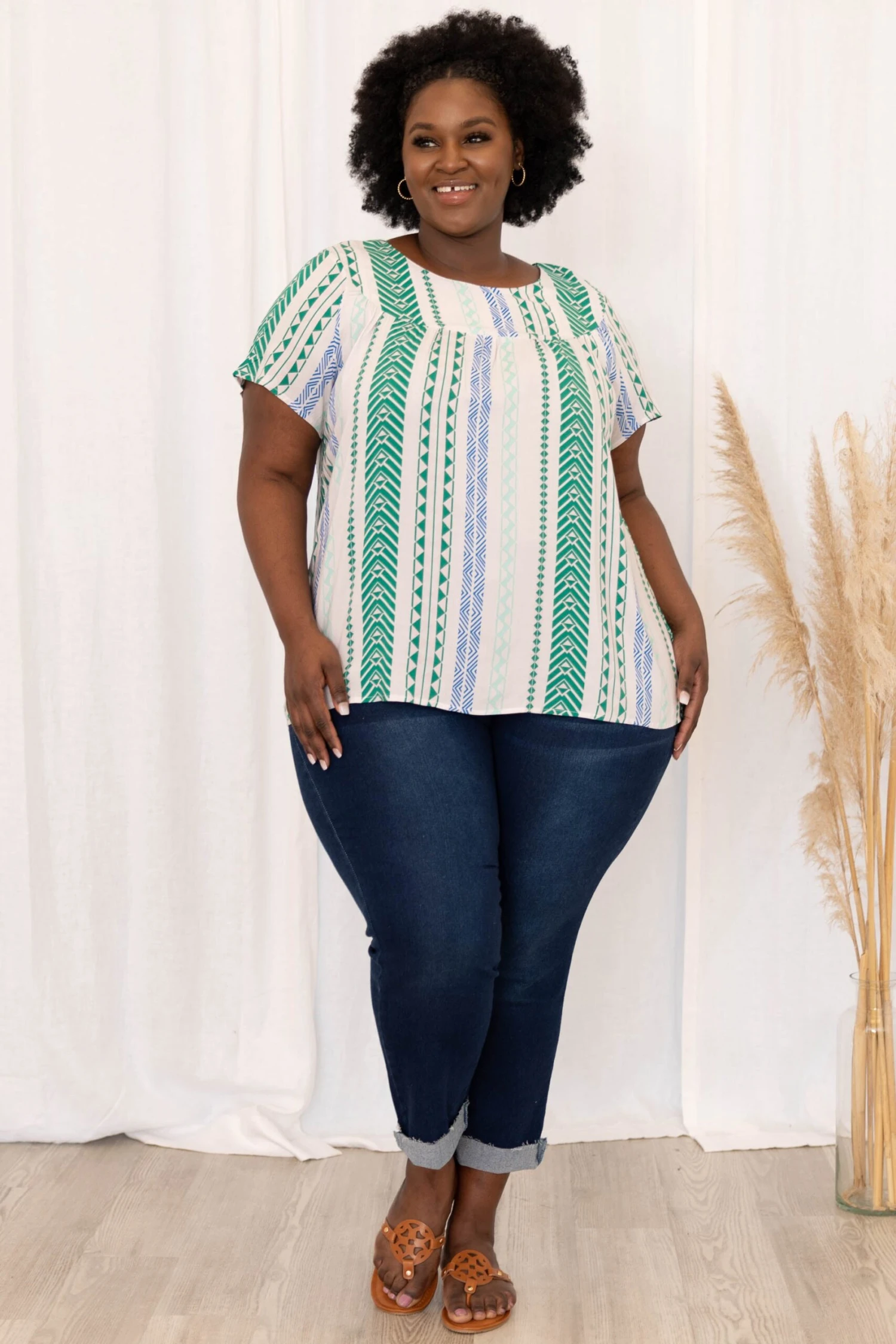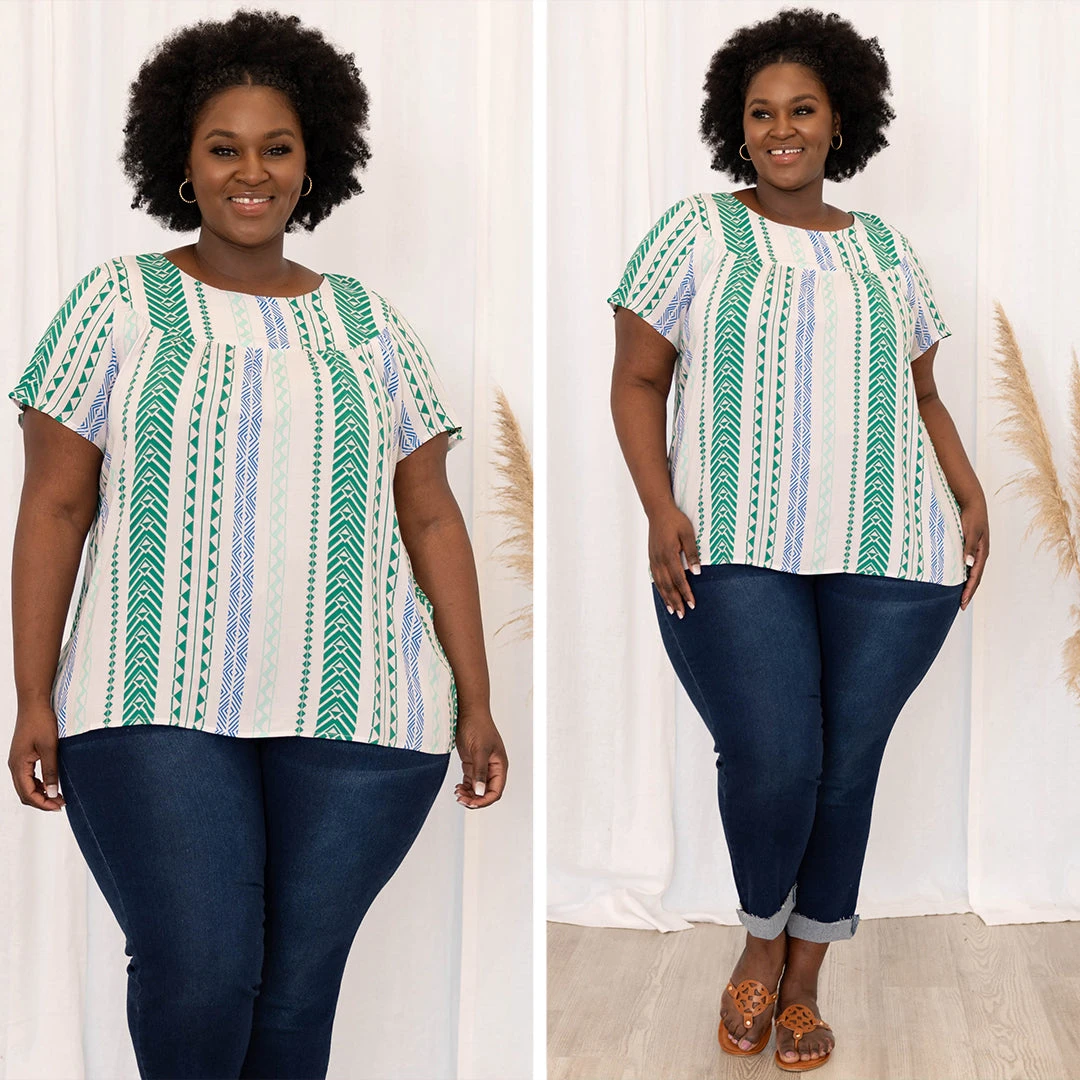 This top is our new fav! The Aztec pattern is so cute and the lightweight material is perfect for spring days! Pair this babe with jeans and wedges to look as stunning as this top!