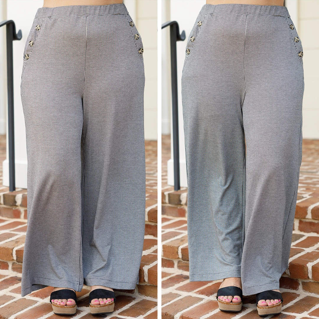 Grab these beauties for the season! They are designed to fit your style for any occasion! With their black plaid pattern and stylish flare design, these pants will give you the perfect look for a day in the office, a night out with the girls, or any occasion in between! Be sure to show off your look with these fashionable pants!