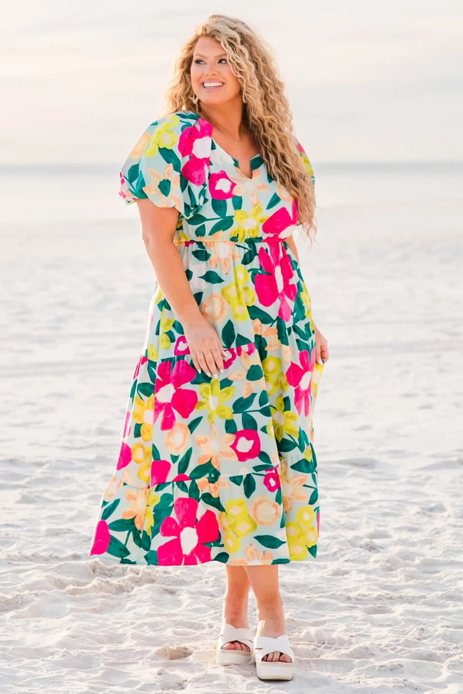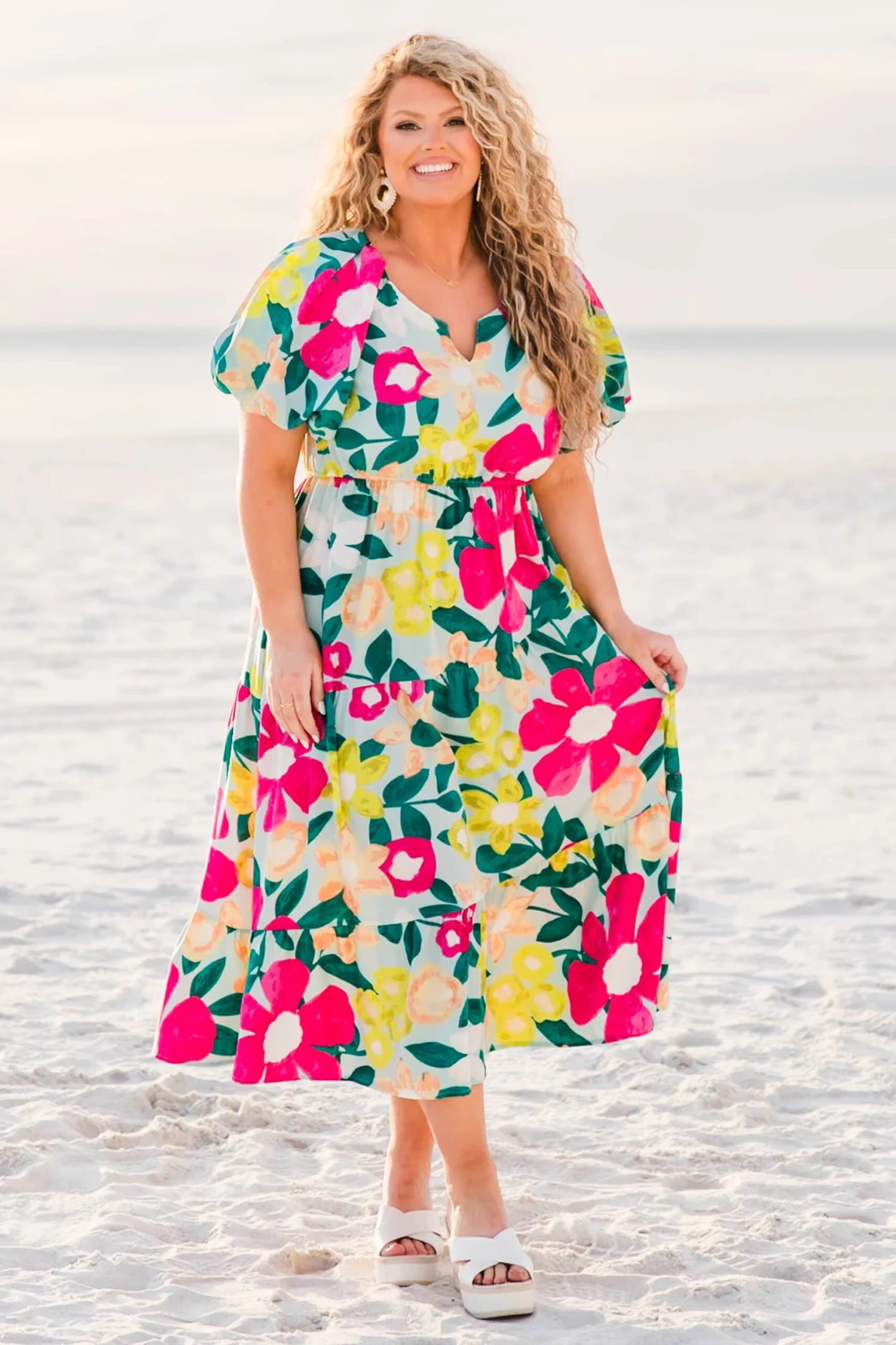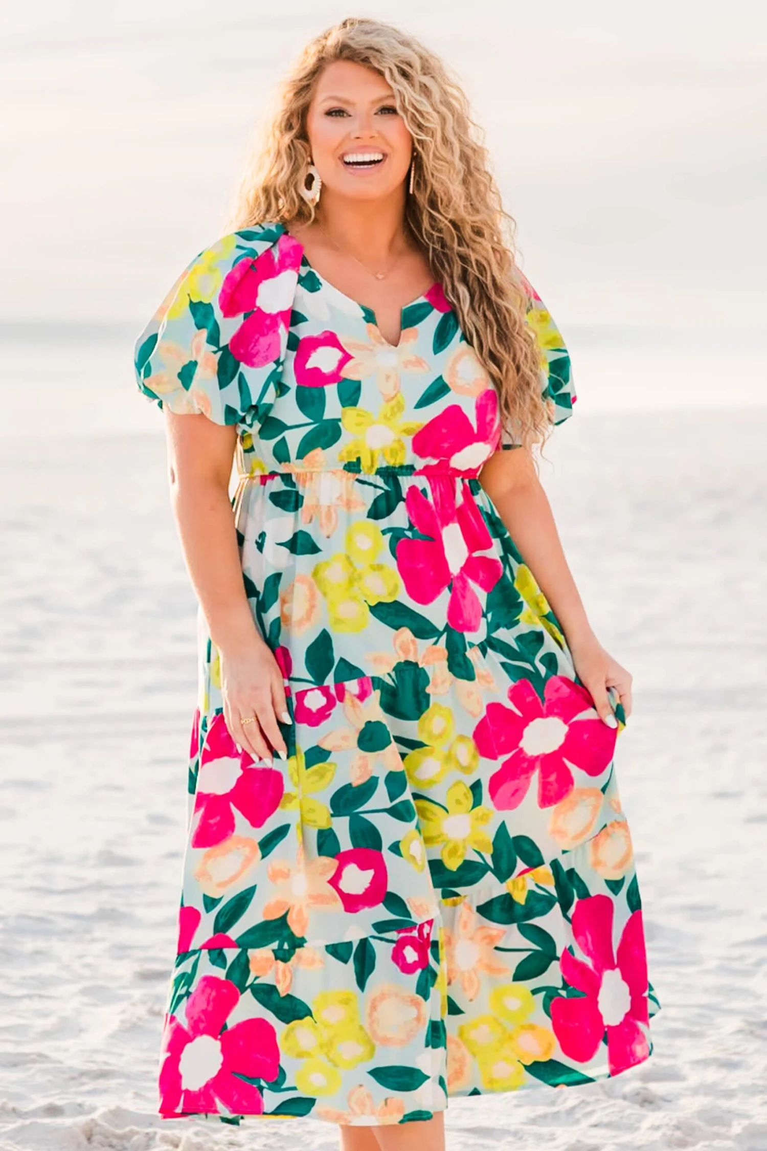 This dress will make an eye-catching statement with its bold mint mix, beautiful floral pattern, and sassy midi length! The bubble sleeves add the perfect touch of sophistication and flair! Dress to impress in this stylish, sophisticated piece!