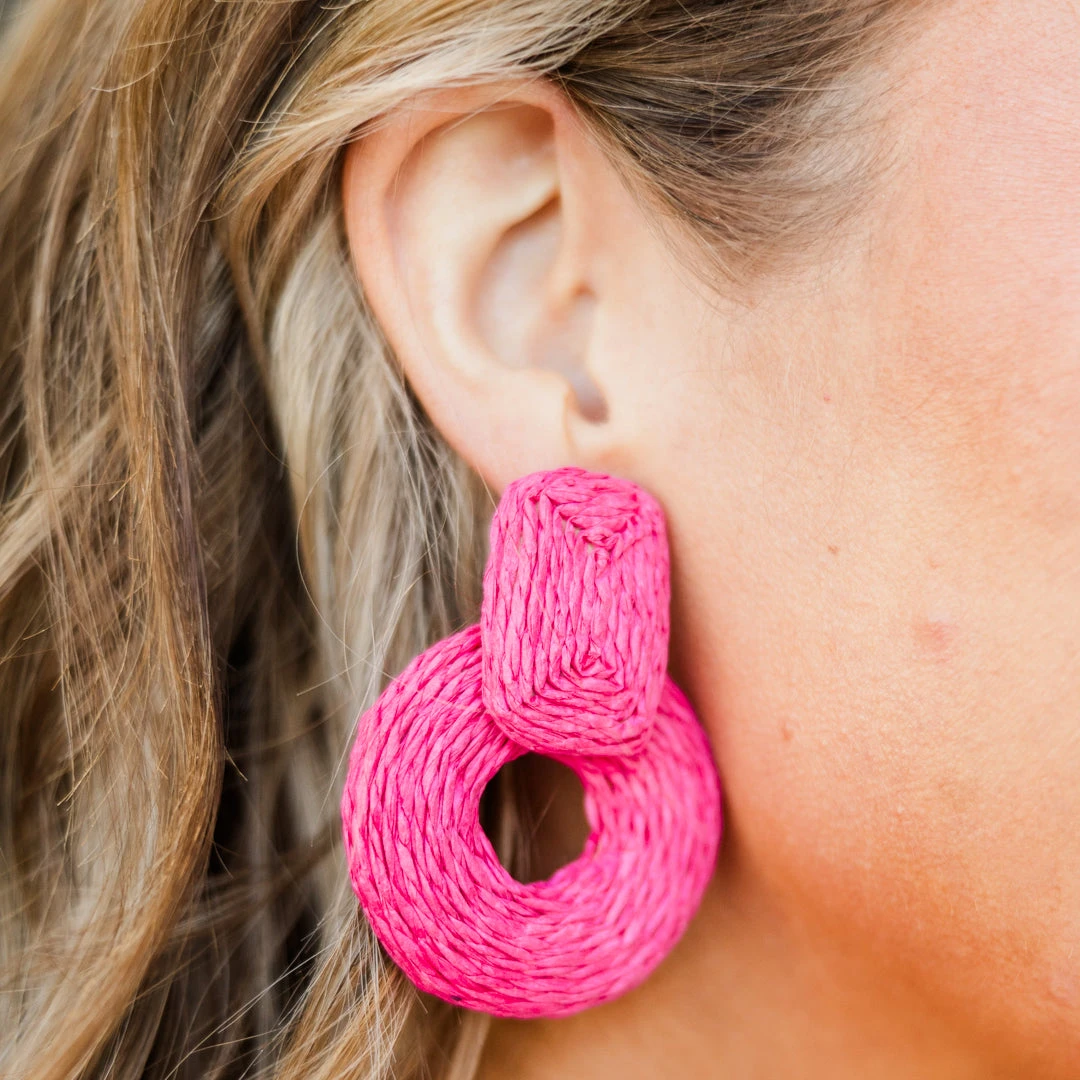 Dress up your look with these fun Sunset Silhouette Earrings in fuchsia! The unique raffia material adds a touch of playful charm to any outfit, while the classic post backs provide a secure fit! Perfect for adding a pop of color to your everyday style!