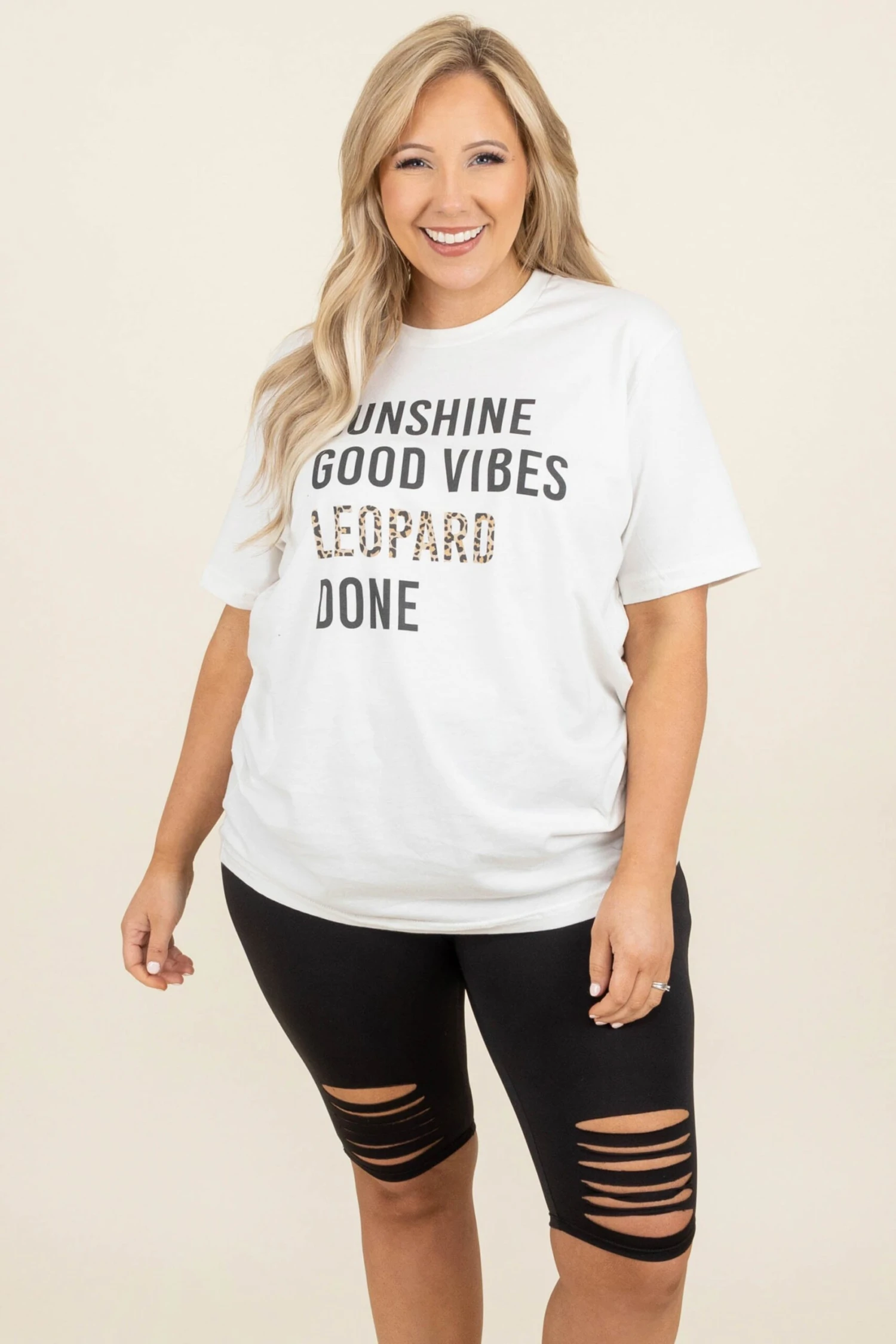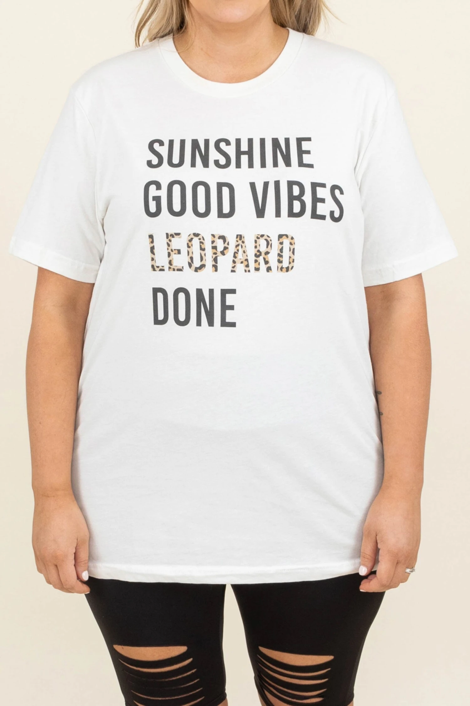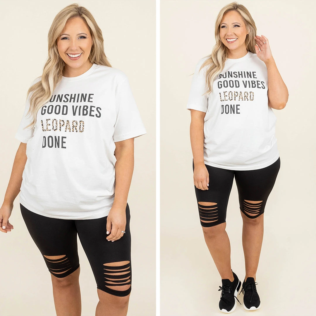 All you need is sunshine, good vibes, and a good leopard pattern! This cute graphic tee is all you need! The white color is so easy to match with everything and the sassy graphic is so stylish! Pair this with some biker shorts and sneaker for a chic casual look!Â