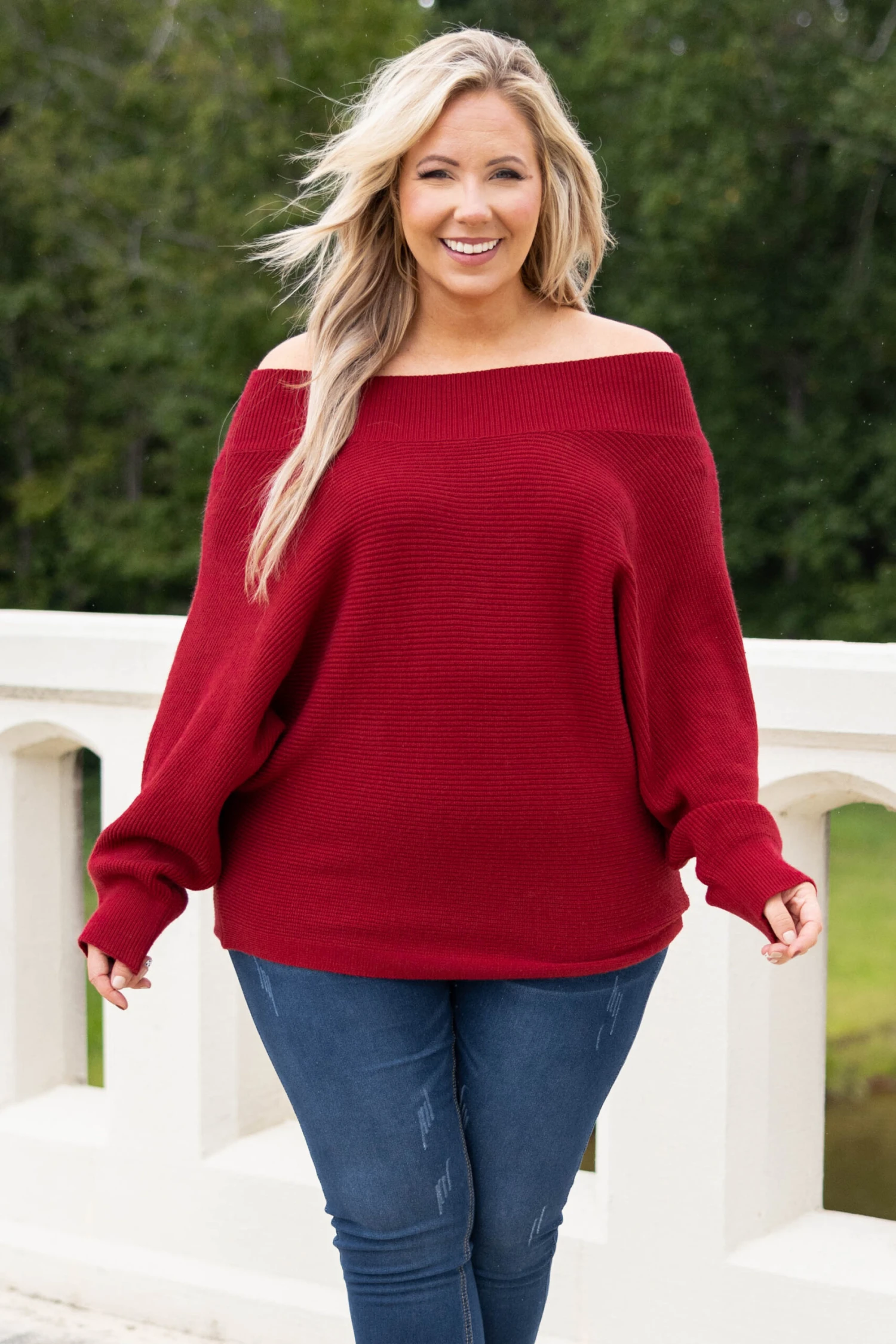 Our advice to you is to grab this adorable sweater! This sweater has a lovely red color and a cozy, ribbed texture that is just in time for the season! The stretchy, figure flattering fit is perfect for pairing with all of your favorite bottoms and accessories this season!Â