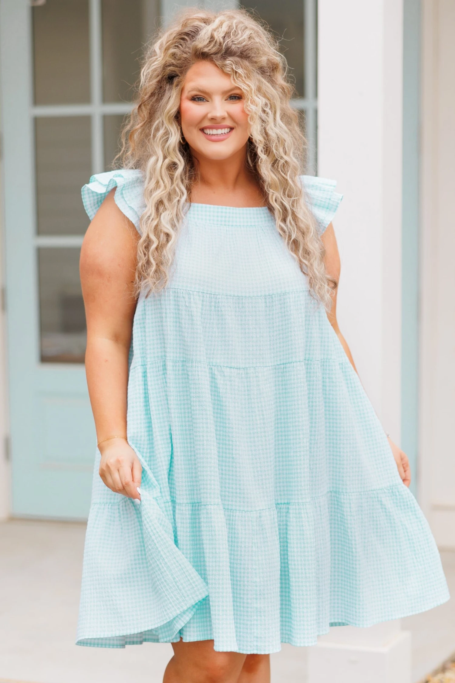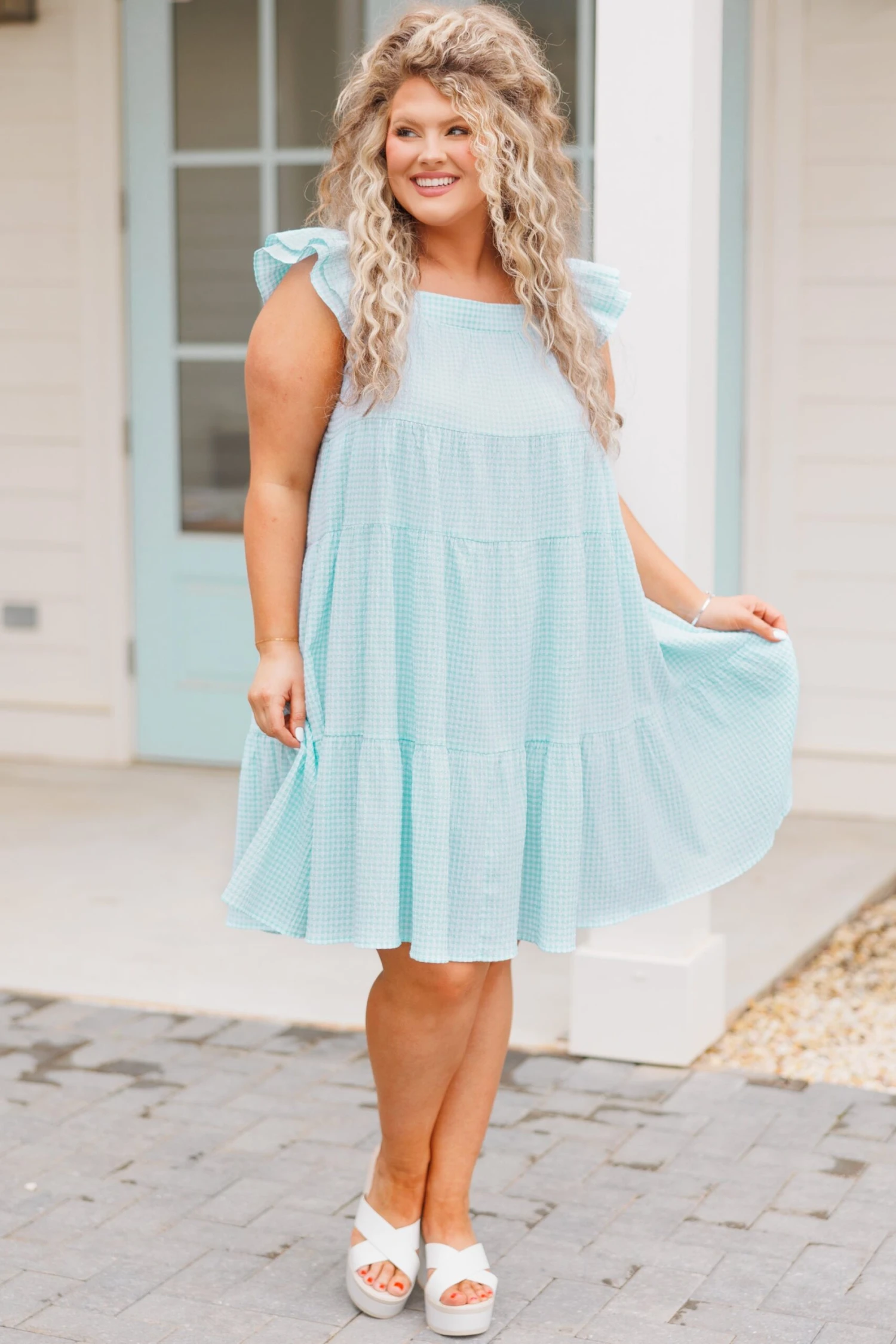 You’ll be the talk of the town in this dazzling dress! Look no further than this for a stylish brunch outfit! Featuring a pretty mint hue and plaid pattern, this dress offers a comfortable, flowy fit! Wear this dress for your next brunch date for a look that is both timeless and chic!