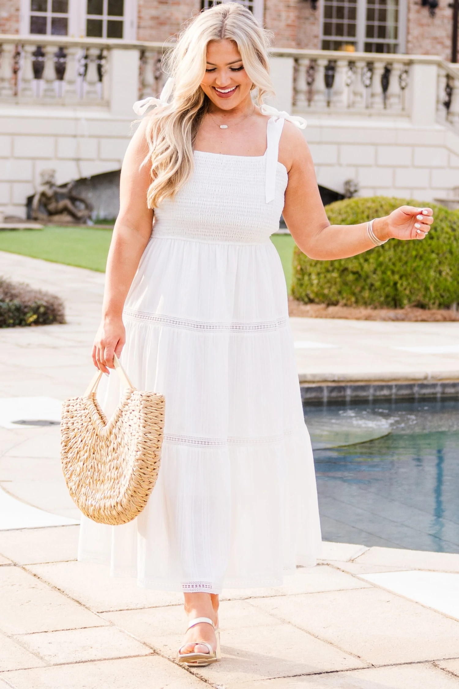 Elevate your summer wardrobe with our Sweetly Stunning Dress! Featuring a smocked bodice, delicate lace detailing, and adorable strap ties, this dress is both comfortable and stylish! With its classic white color, it’s perfect for any occasion!