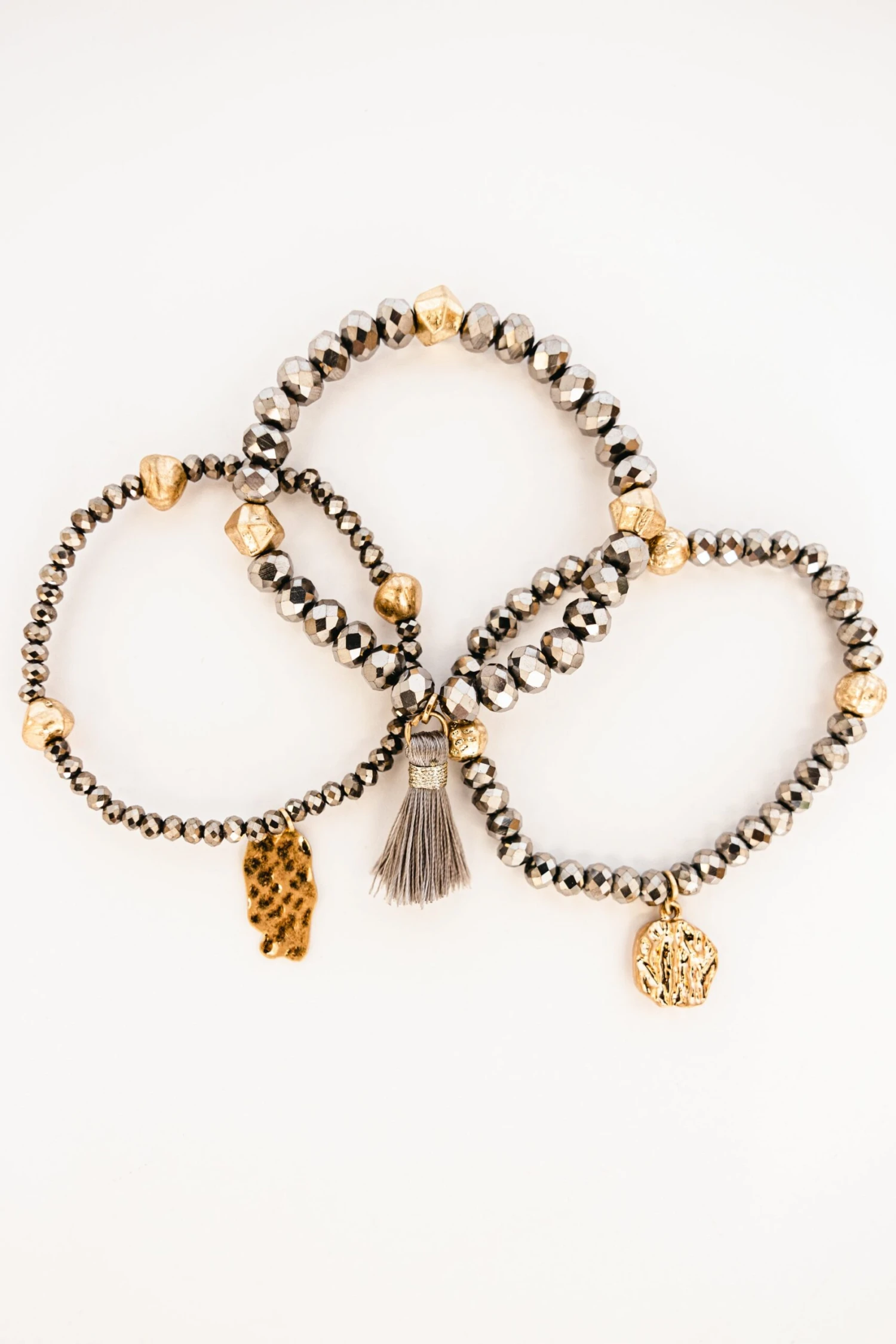 This stylish bracelet is the perfect accessory for year round wear! It features adorable charms and a beaded design that looks great with any outfit! Its stretchy band ensures a comfortable fit and its neutral color allows it to easily match any fashion style!