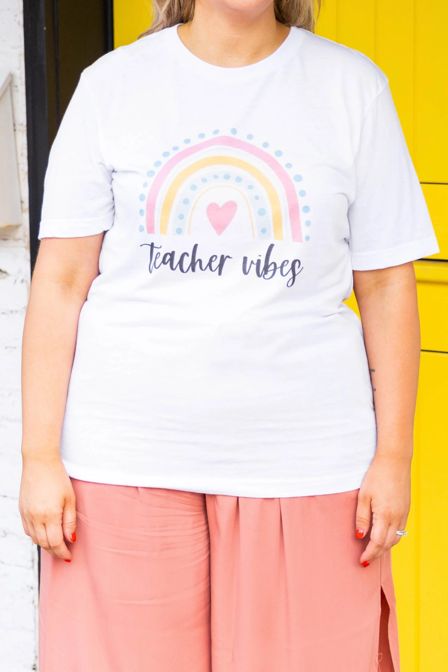 For all the teacher vibes, throw this cutie tee on! This babe has a white color with a fun rainbow graphic that will brighten everyone’s day! Style this with some fun pants or skinnies for a super chic look!