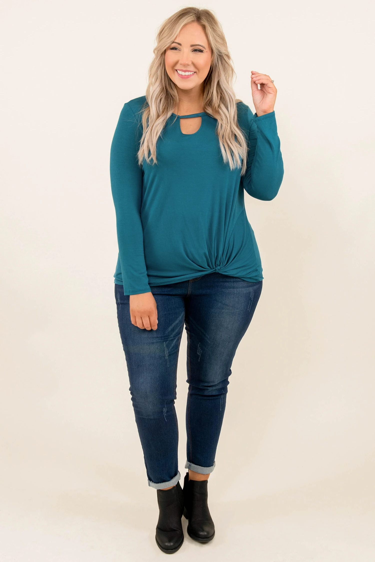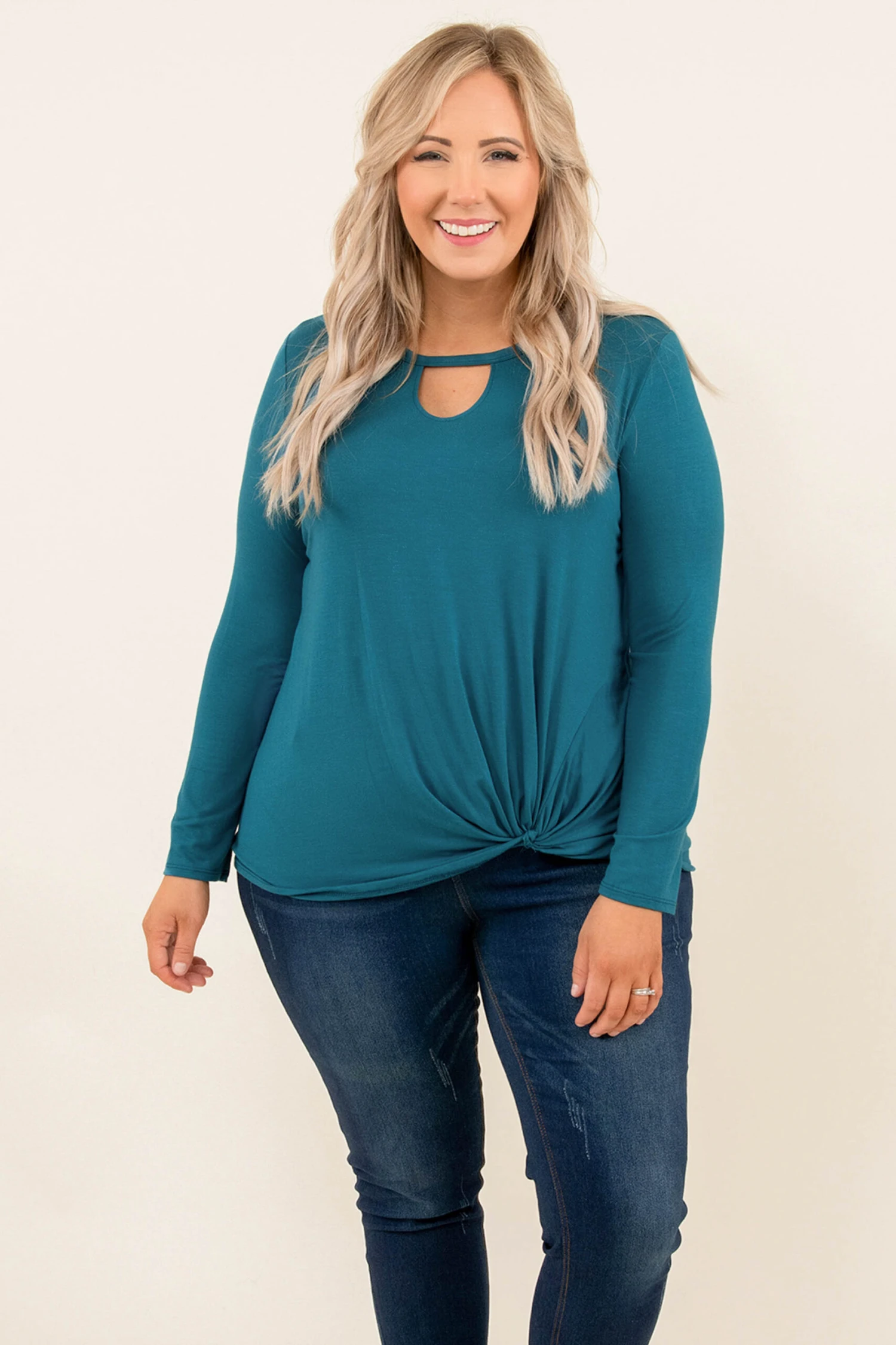 We love this top! It has a solid teal color, a keyhole neck style, and a super comfy fit! The fabric is ultra-soft and we love the figure-flattering fit! Wear it with leggings for a casual day of lounging or dress it up with skinnies! Any way you style it you’ll look super trendy!