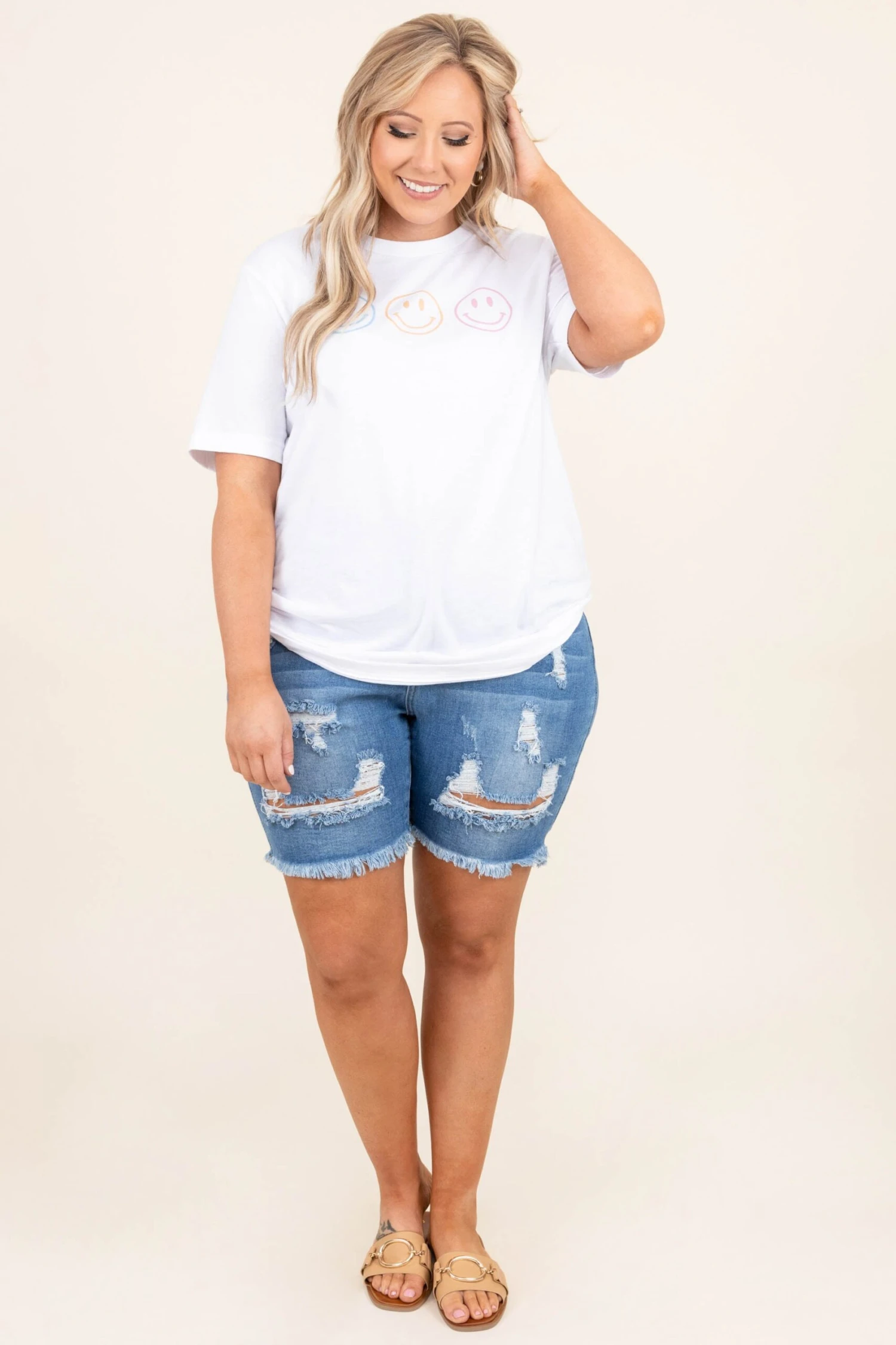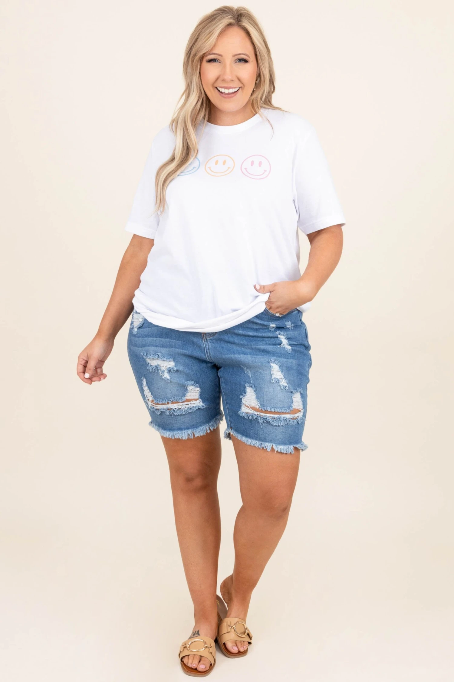 These light wash cuties will have us dreaming of all the summers past! The distressed look is so cute for warm weather and the Bermuda length is perfect for pairing with longer tops! Style these with a graphic tee and some sandals for a look that is totally chic!