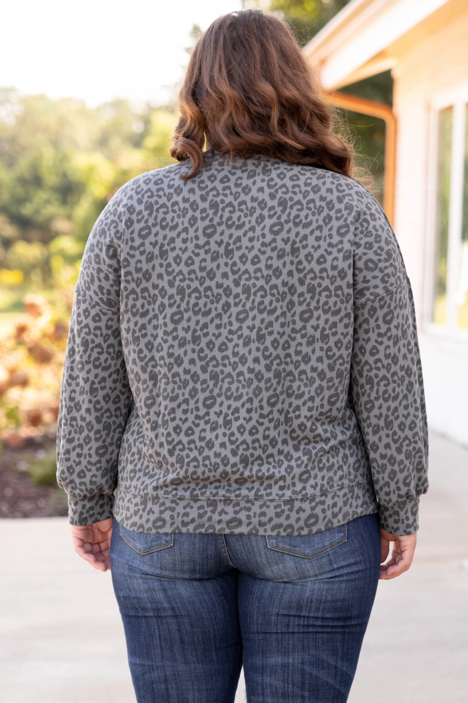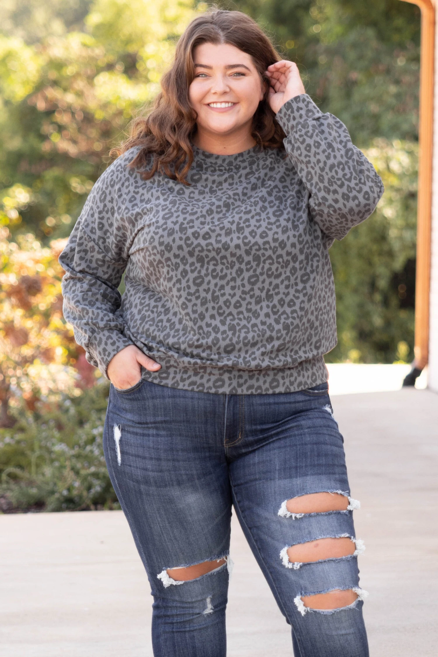 You need this sweatshirt in your wardrobe! This soft sweatshirt has the cutest leopard print pattern and is easy to dress up or down. Pair with jeans or leggings for a chic look!